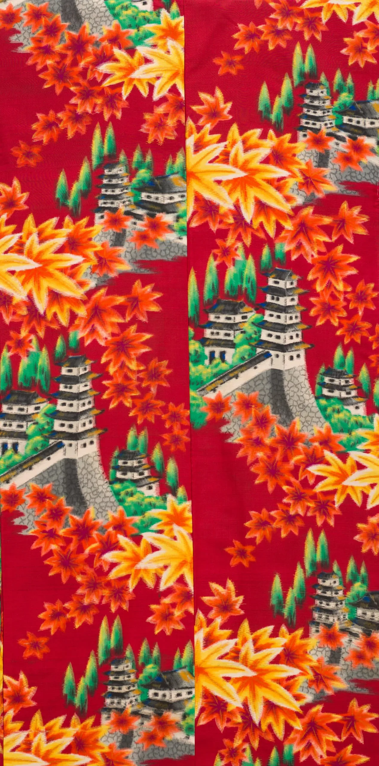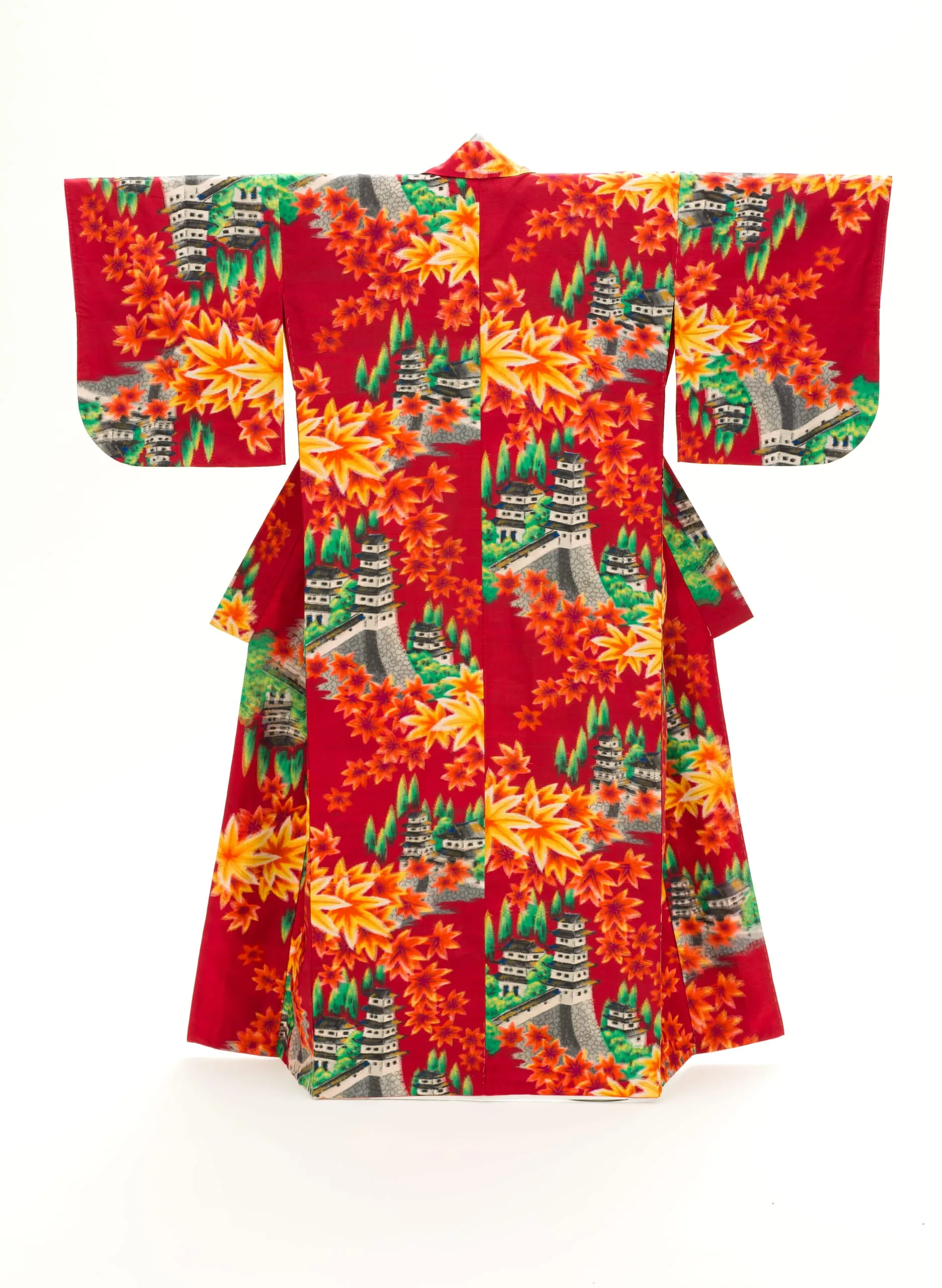 - Woman’s Kimono with Autumnal Landscape with Maple Leaves and Castles