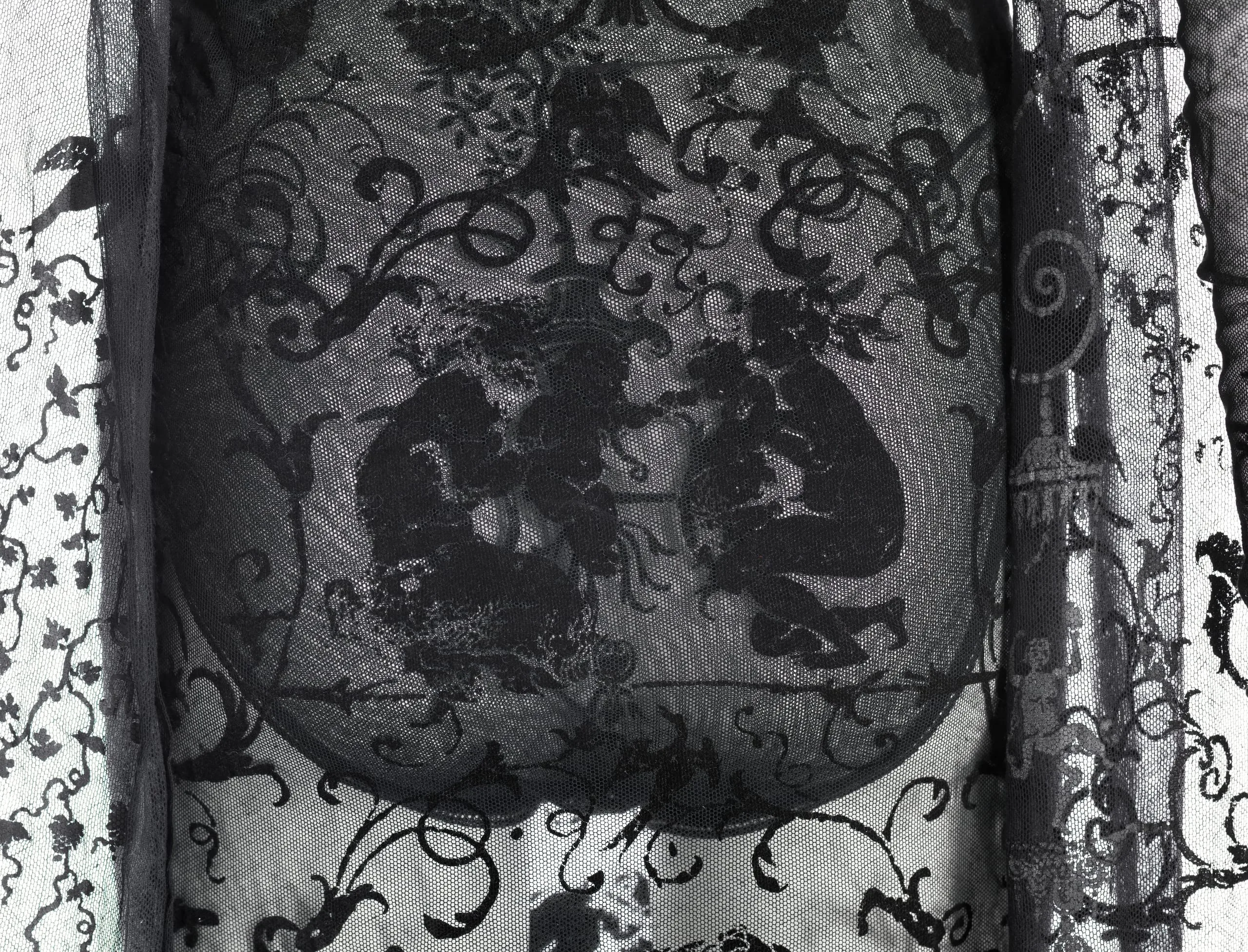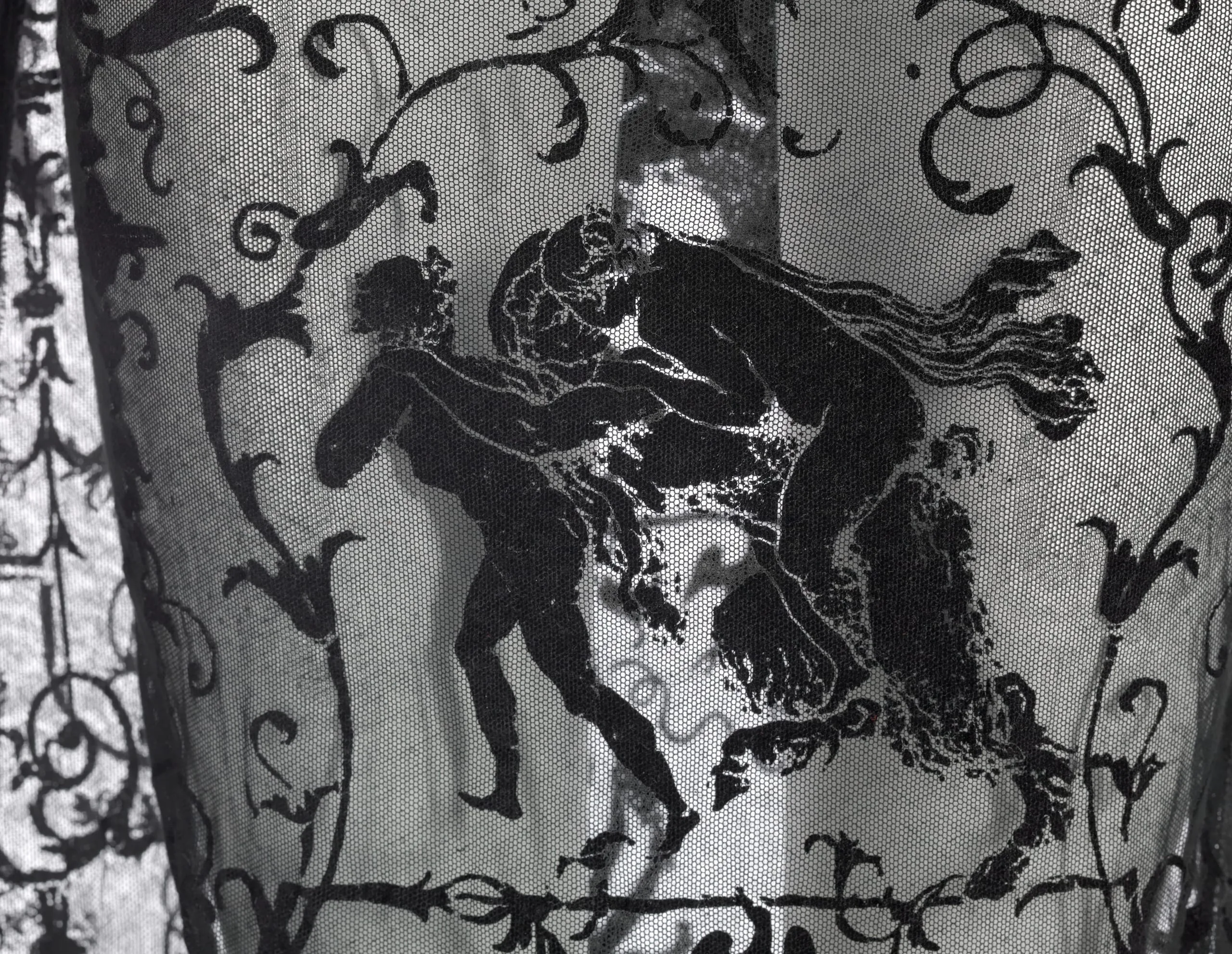 - Cotton/nylon net, rayon flock-printed