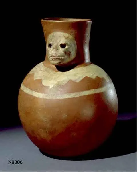 - Globular jar with modelled skull face on spout