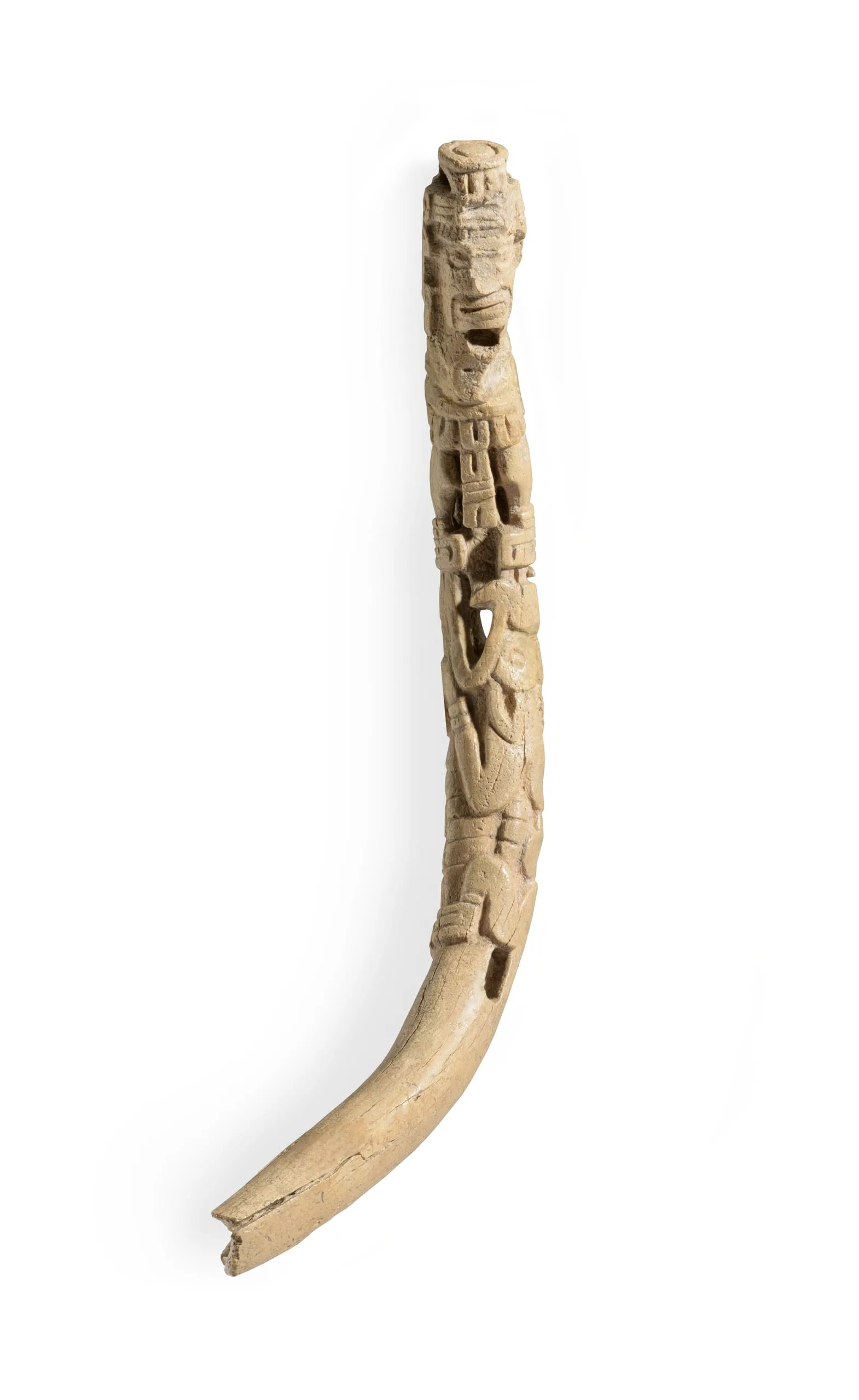 - Carved Manatee Rib with Figure Emerging from Crocodile