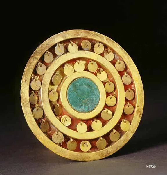 - Metal (gold) and stone (malachite)