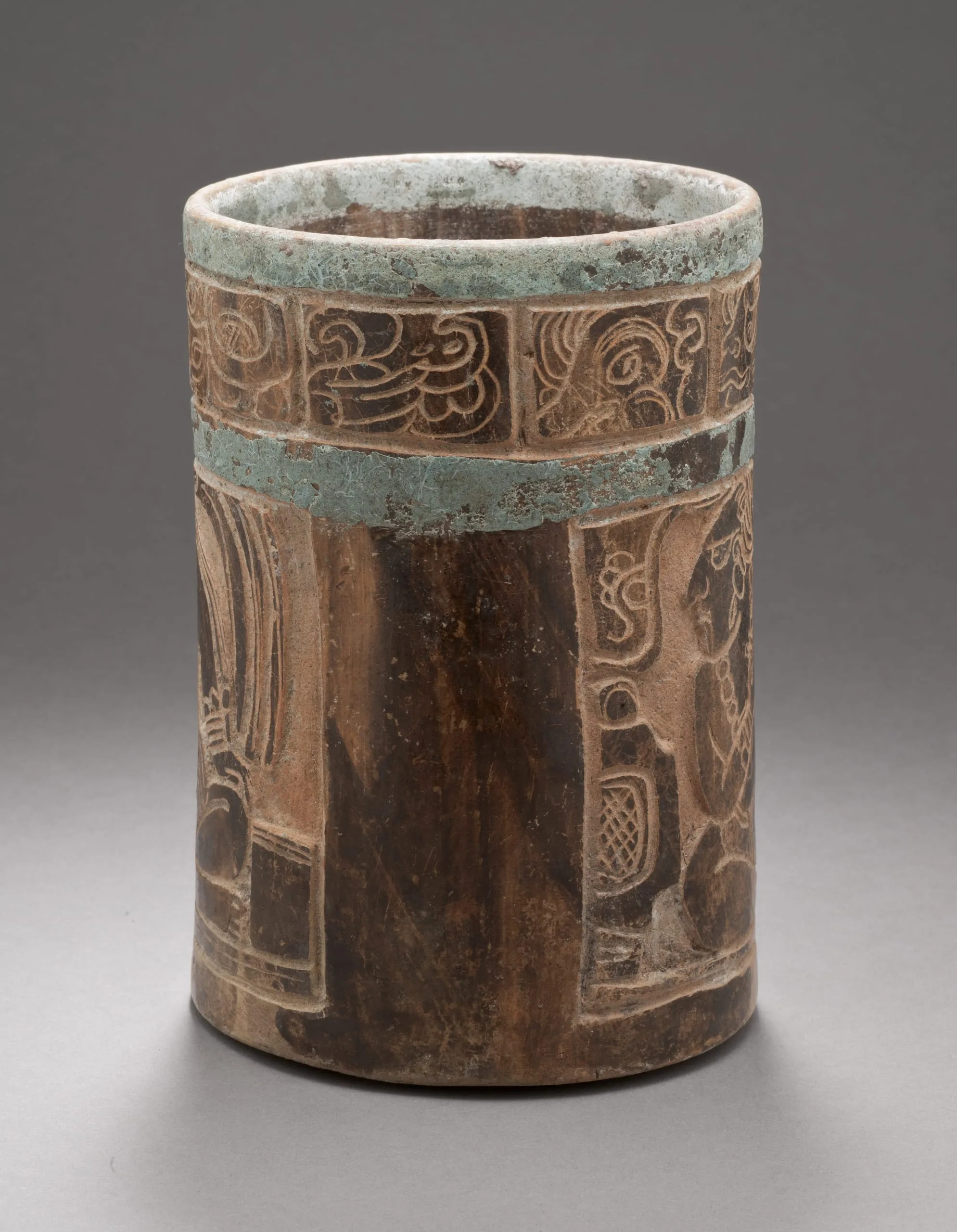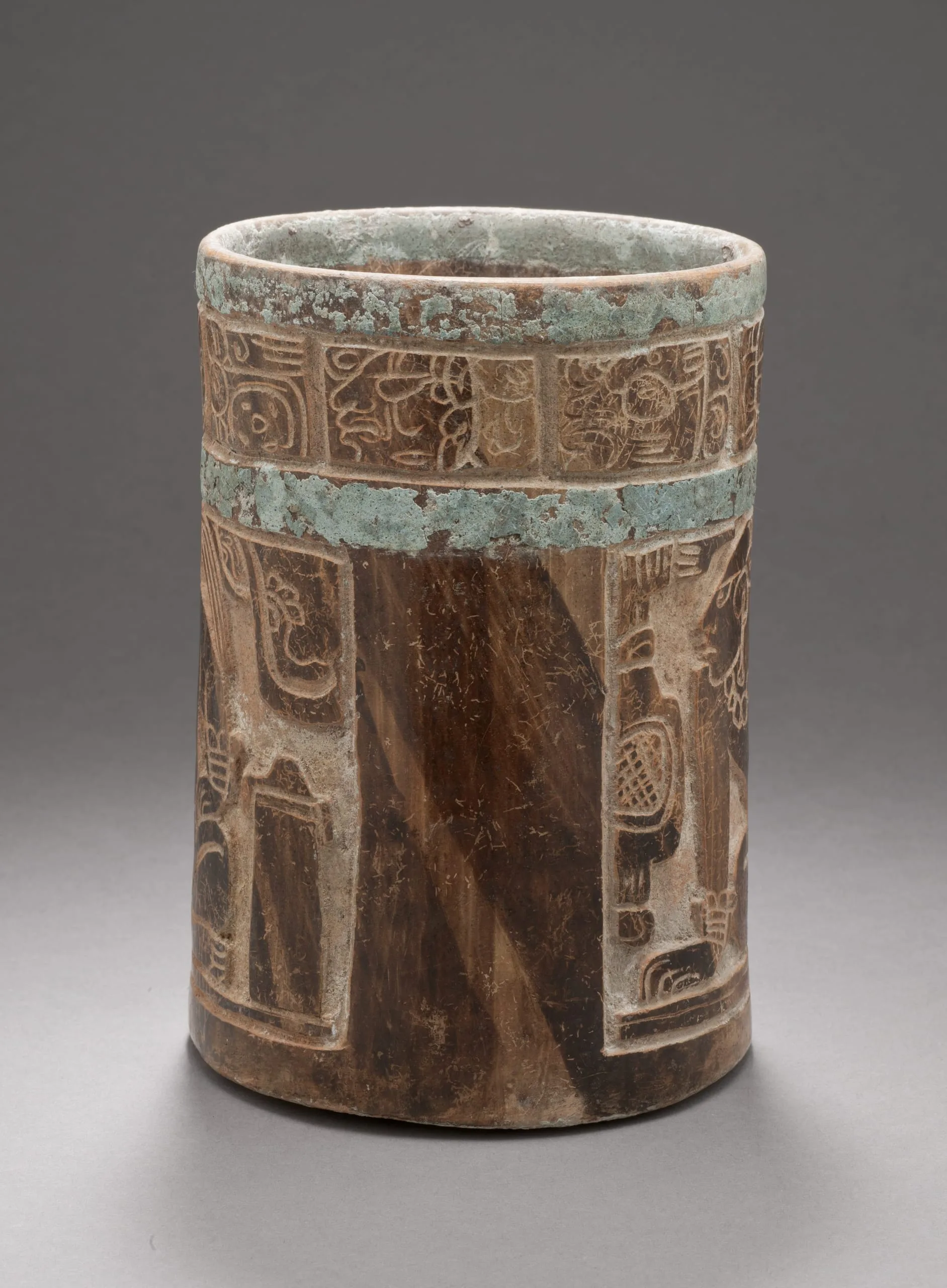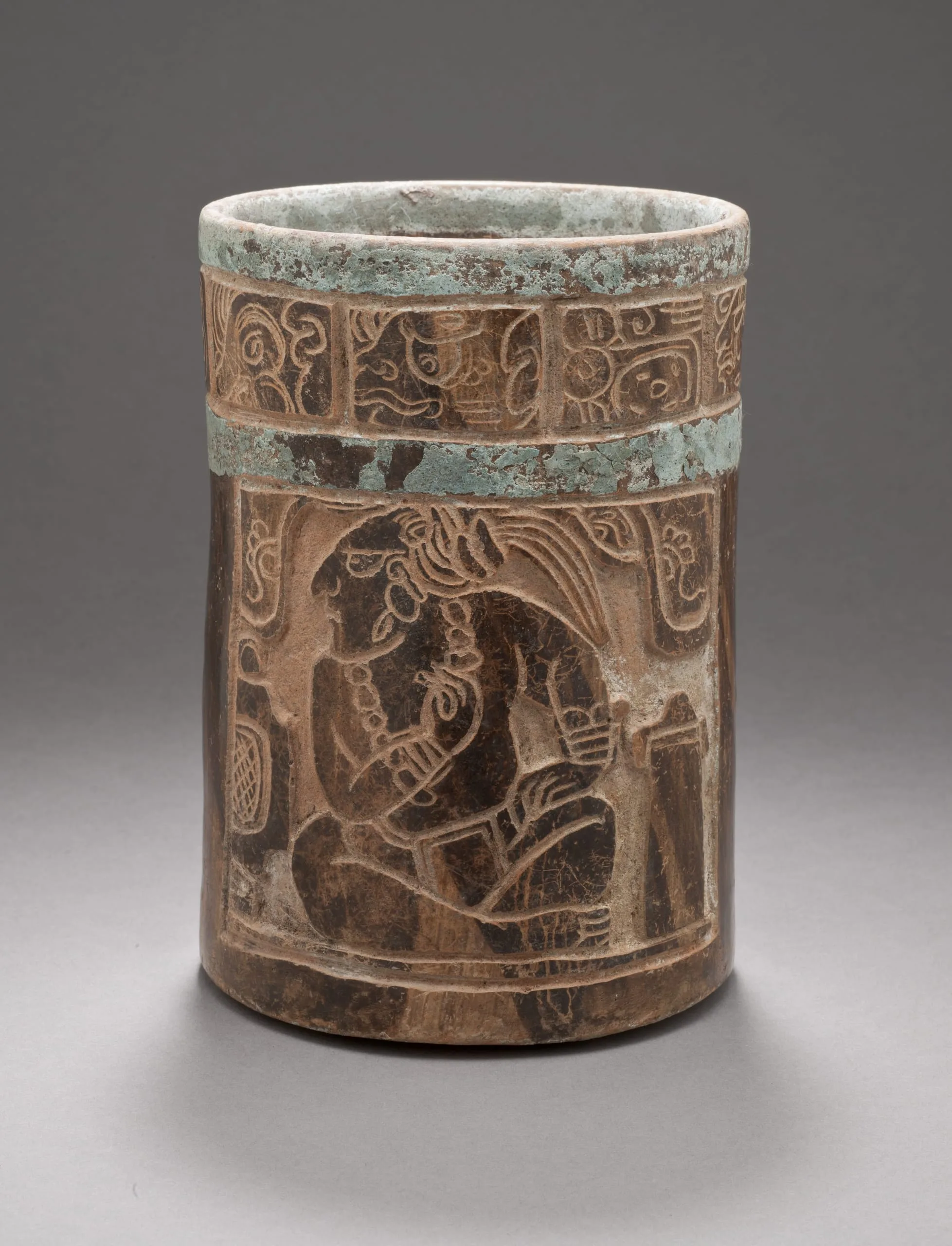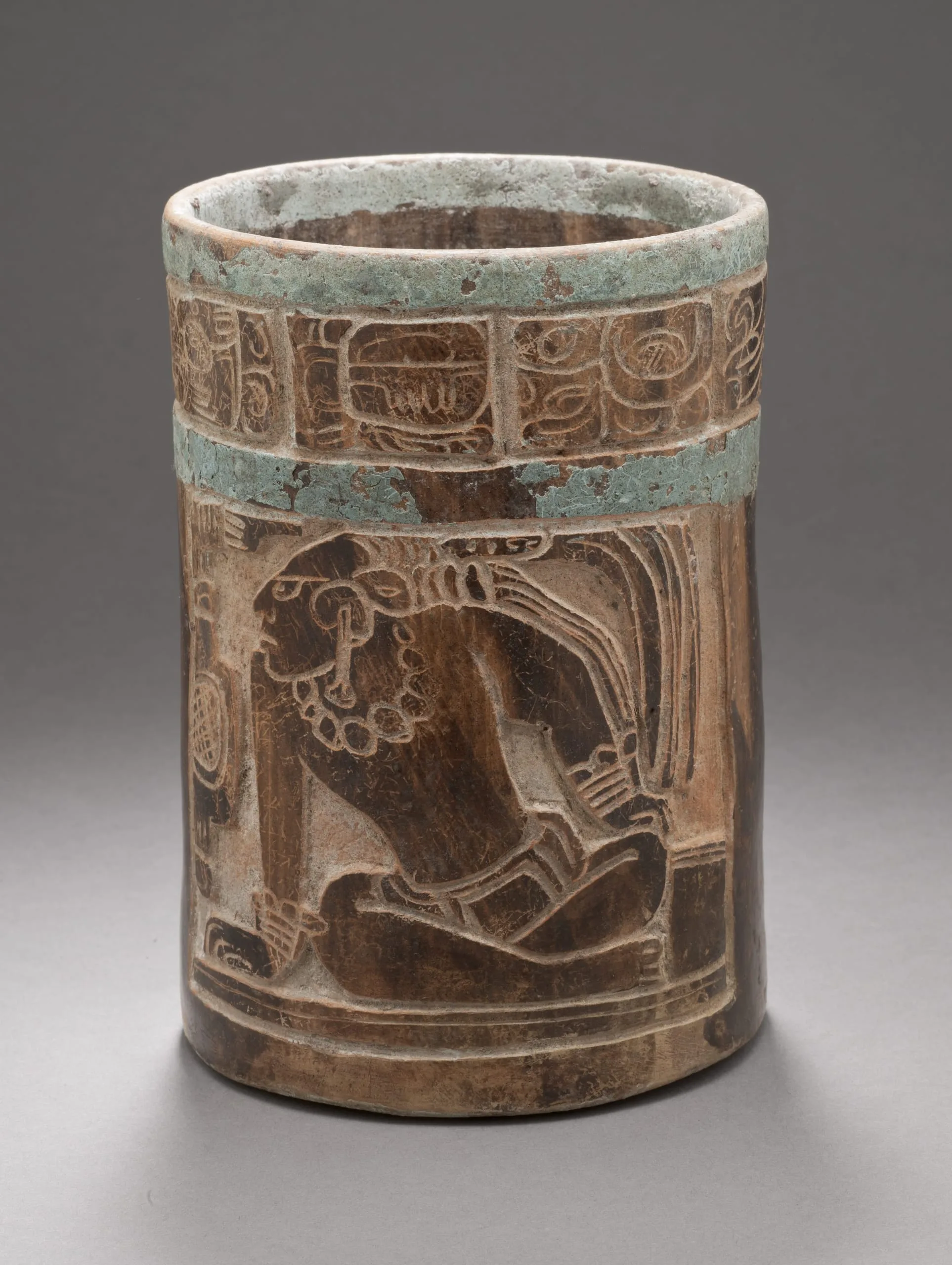 - Slip-painted ceramic with postfire application of Maya blue pigment
