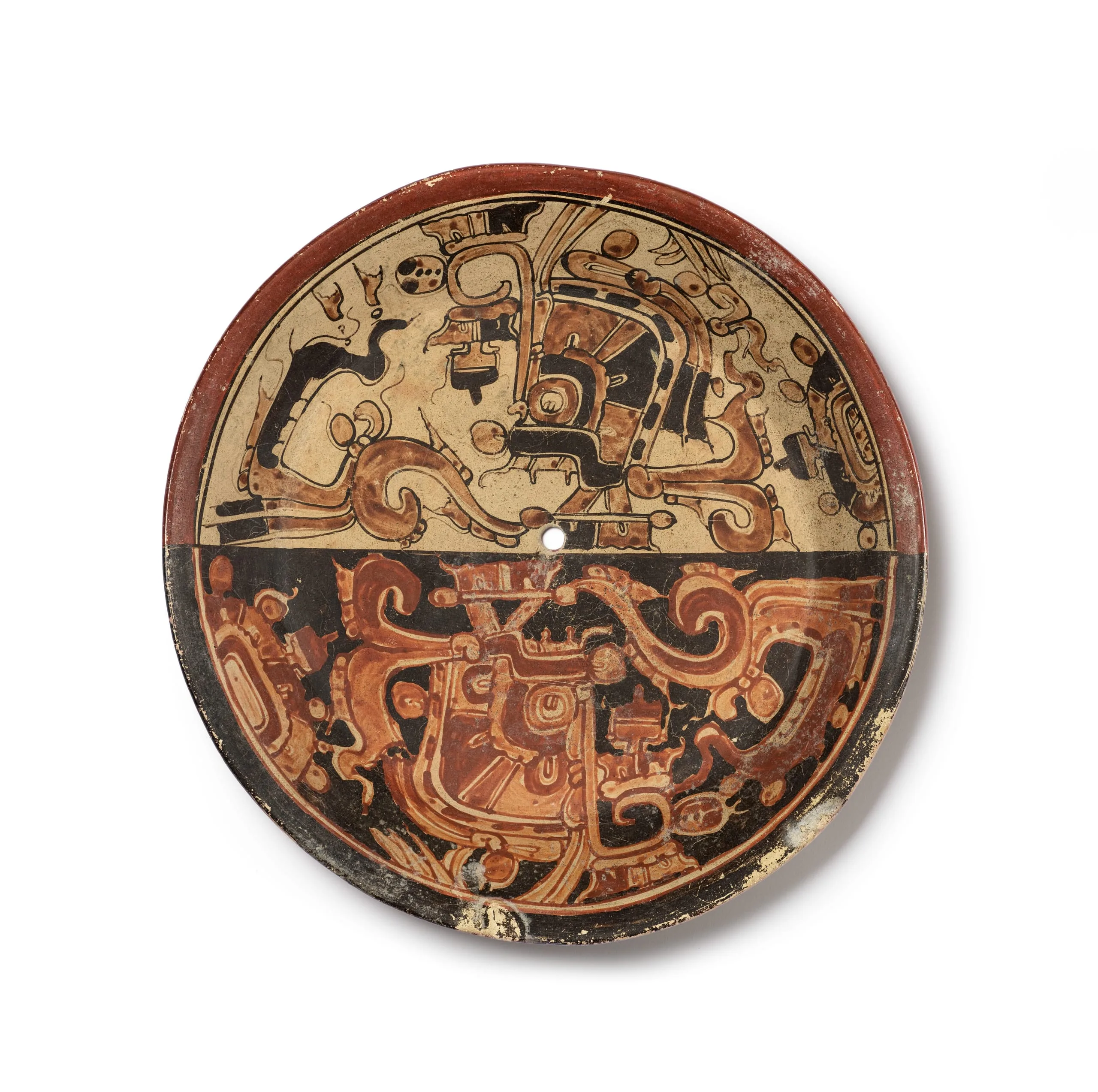- Plate with Teotihuacan War Serpent on White and Black Backgrounds