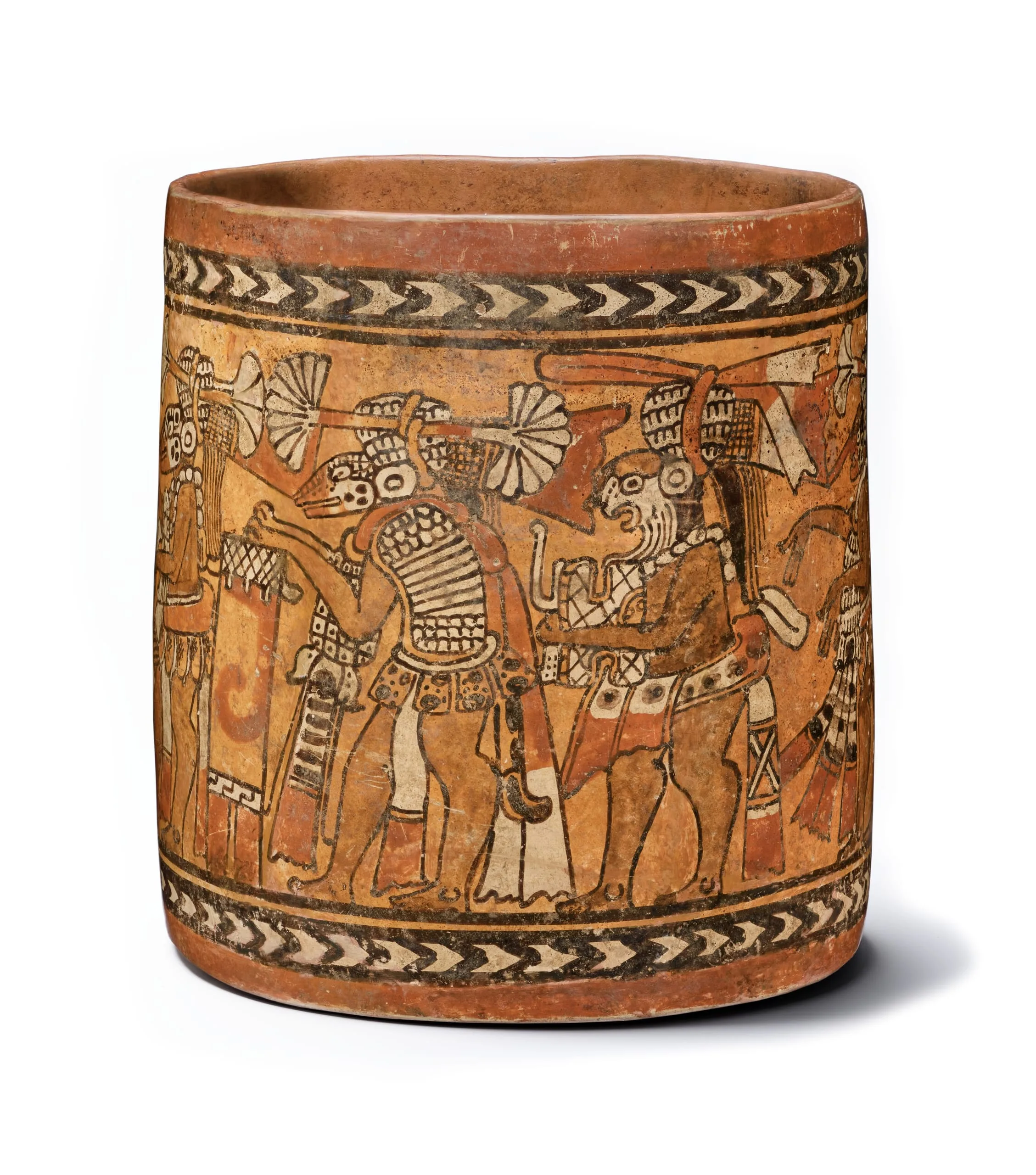 - Cylinder Vessel with Procession of Masked Dancers and Musicians