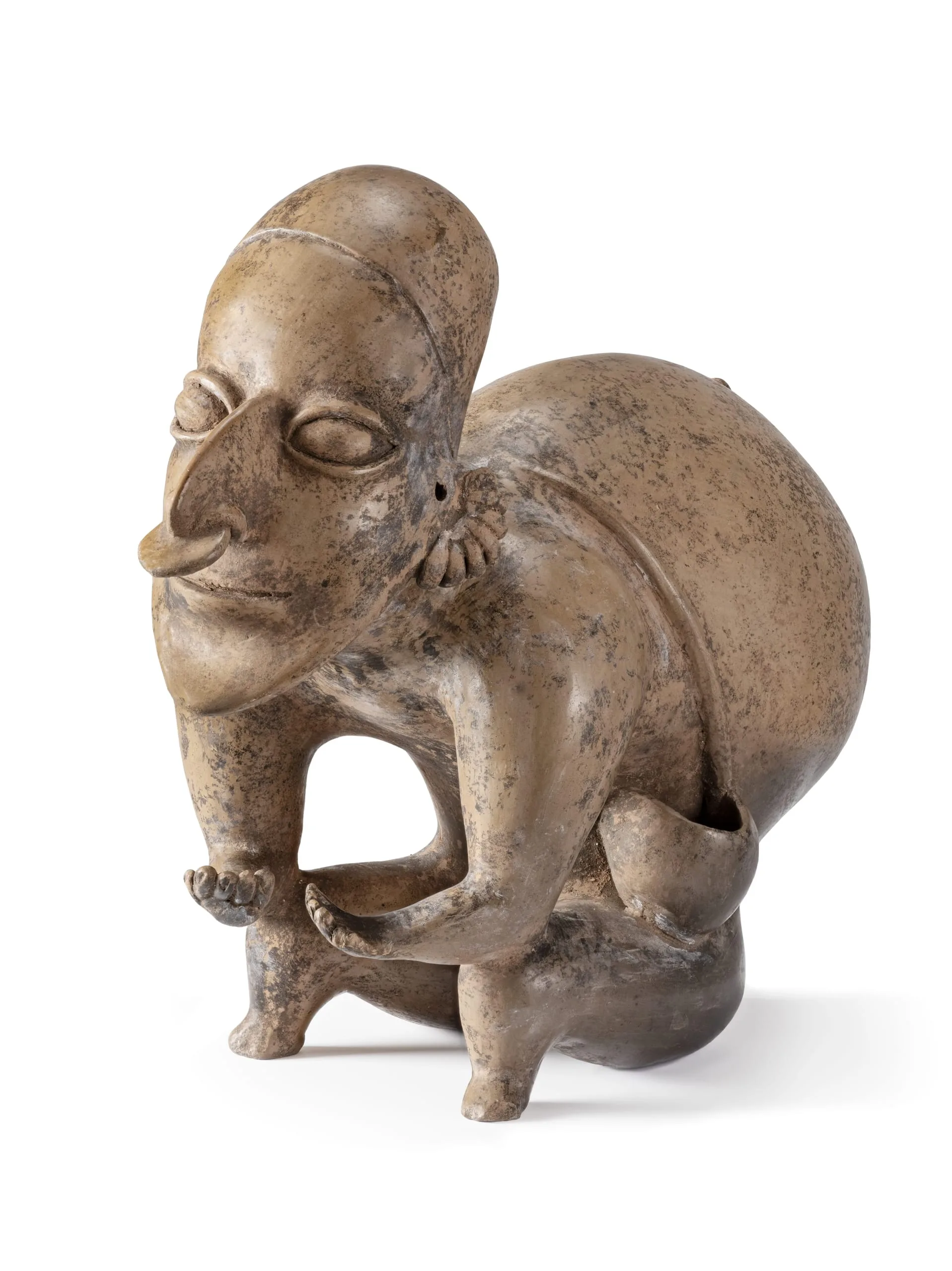 Severely Hunchbacked Seated Male with Earrings and Nose Ring