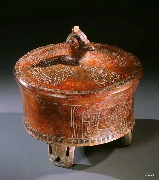- Tripod Cylinder Vessel with Bird Head on Lid