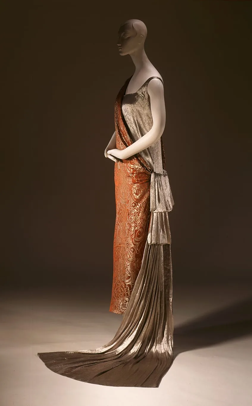 - Silk damask with metallic-thread supplementary weft patterning and metallic-thread and silk satin (lamé)