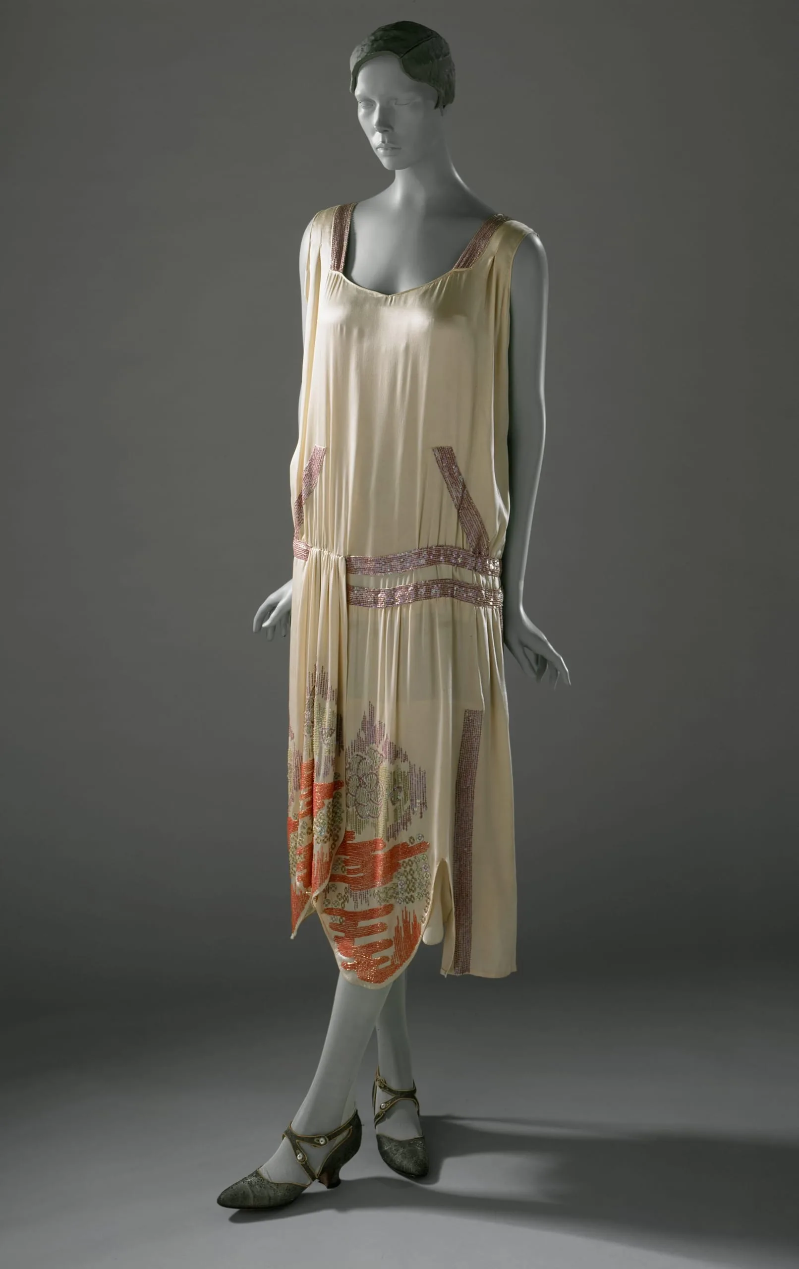 - Silk satin with glass beads, metallic-thread embroidery and sequins