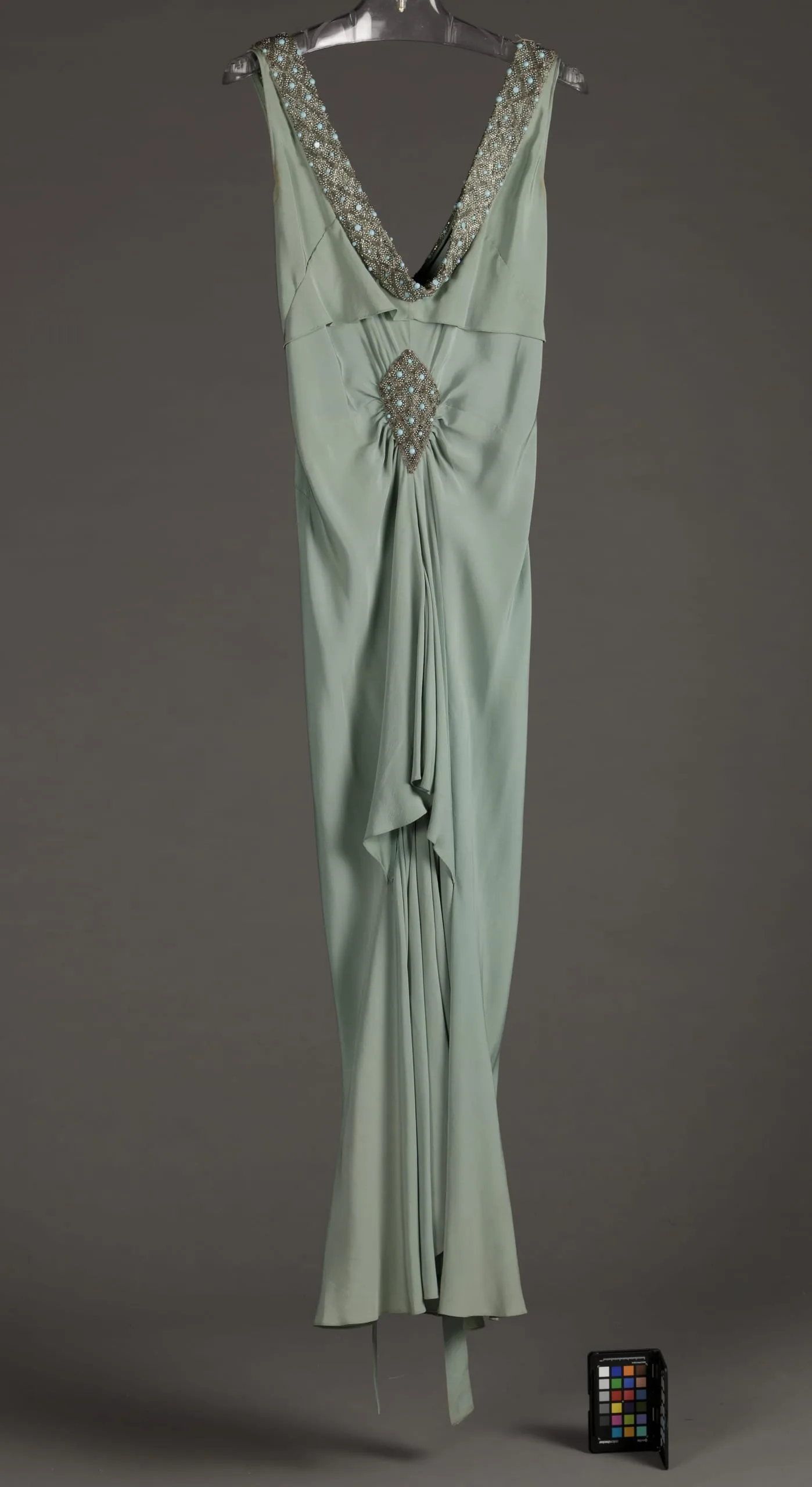 - Dress: silk plain weave (crepe) with glass beads; Slip: silk plain weave (crepe)