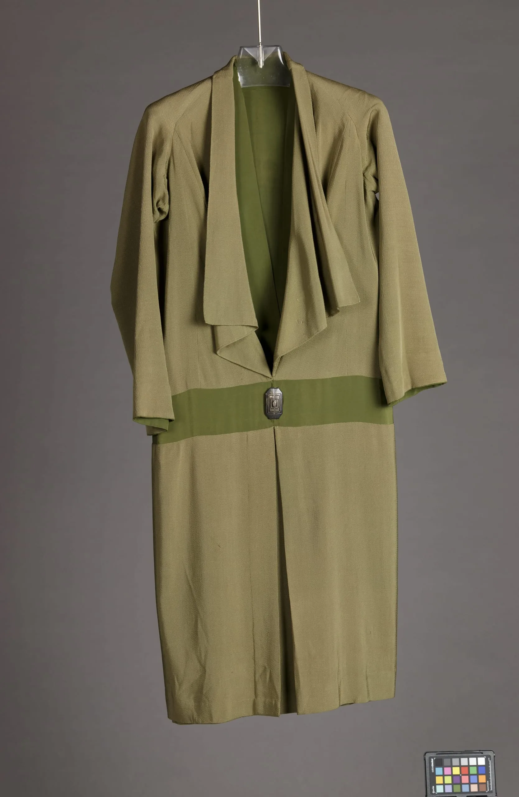- Dress: Silk plain weave (crepe), silver buckle. Vestee: Silk plain weave (crepe)