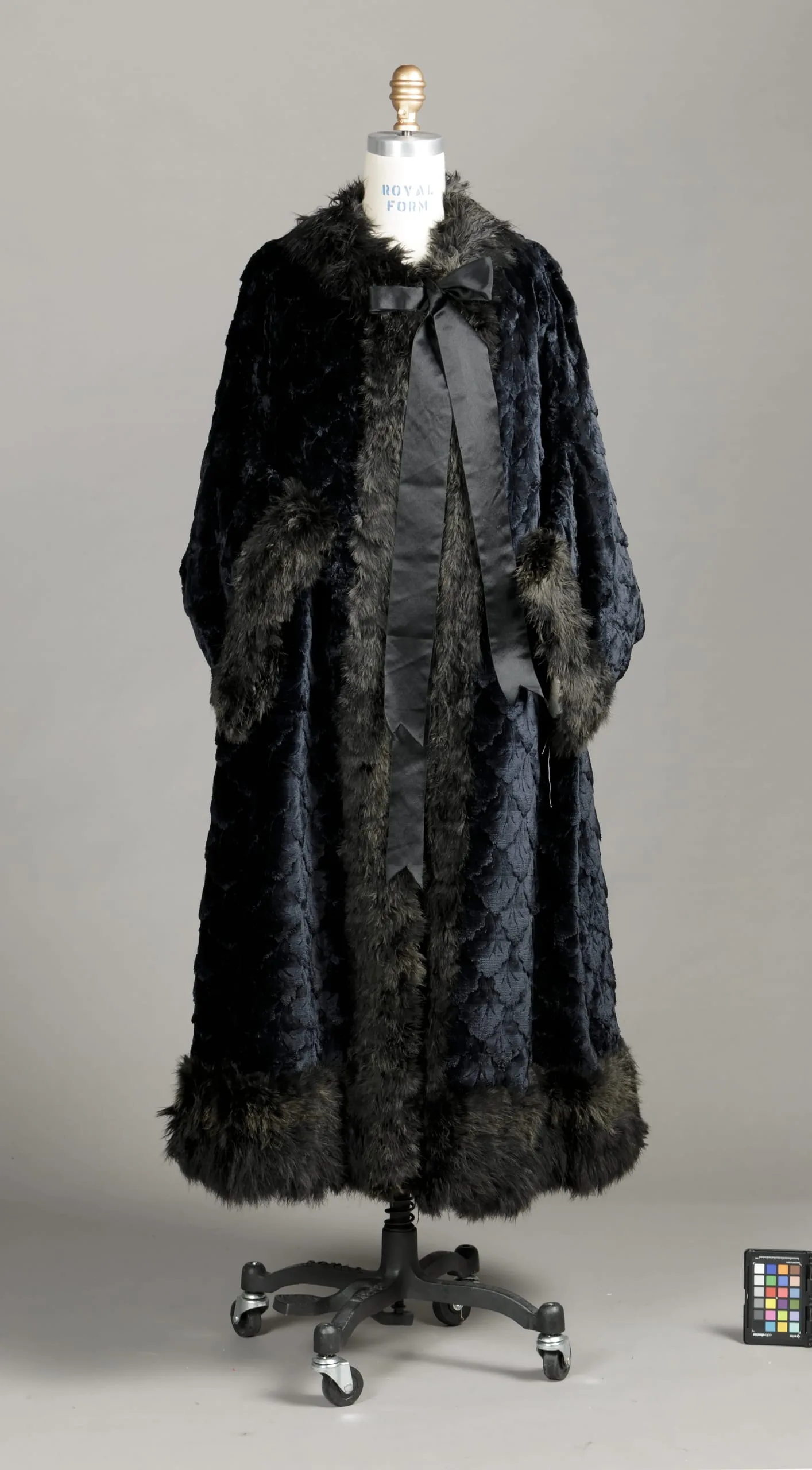 - Silk cut and uncut velvet, with feather trim, silk satin ribbon