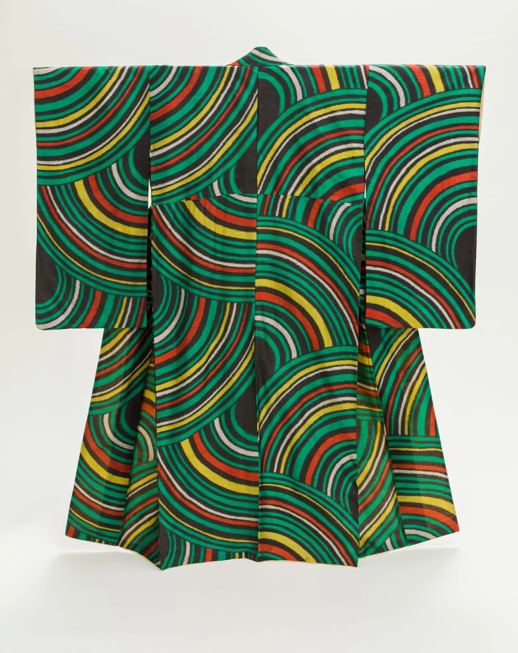 - Young Woman’s Kimono (Furisode) with Curvilinear Bands of Stripes