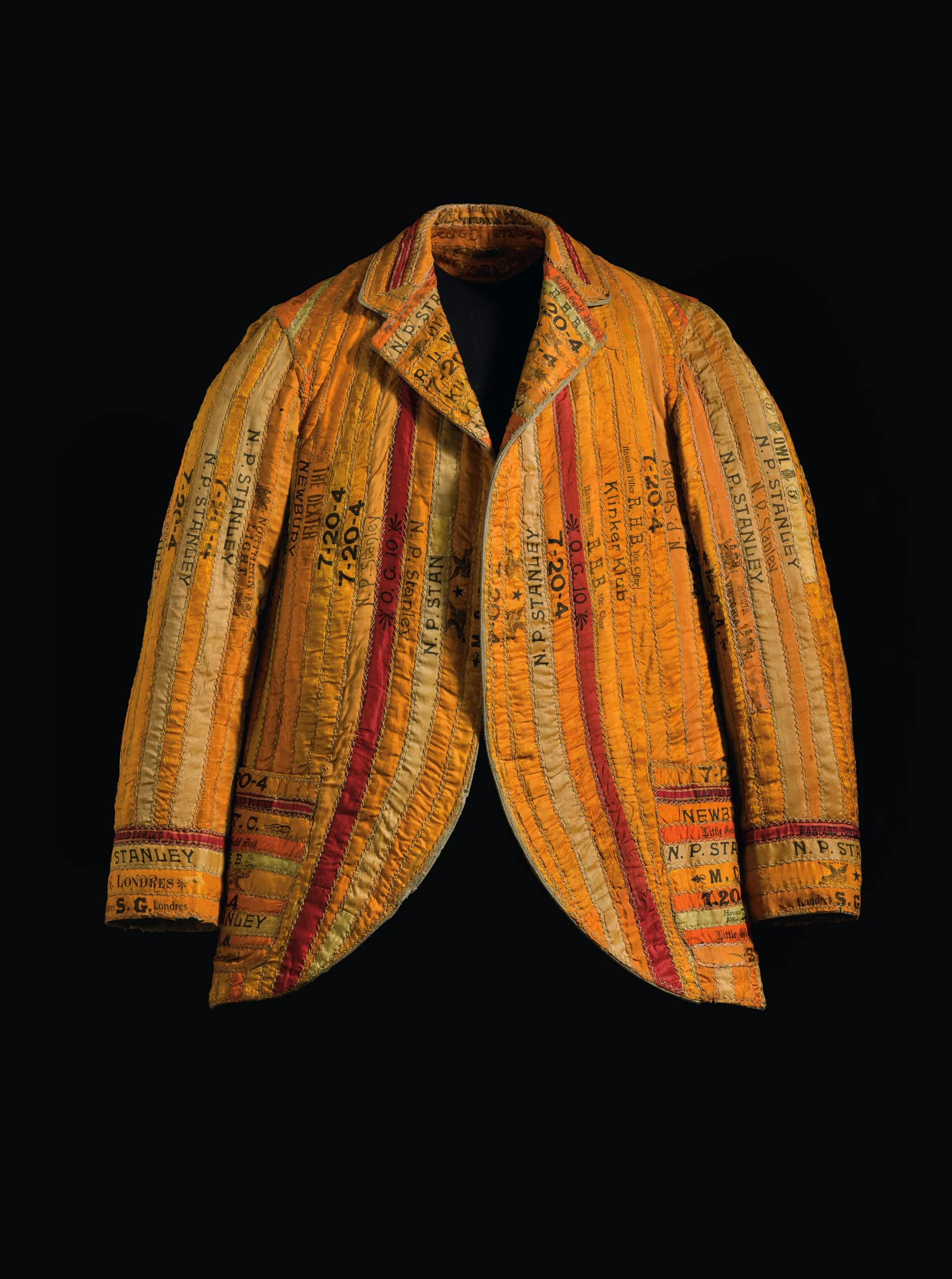 - Silk plain-weave and silk twill ribbons (cigar bands), printed, and quilted on wool plain weave
