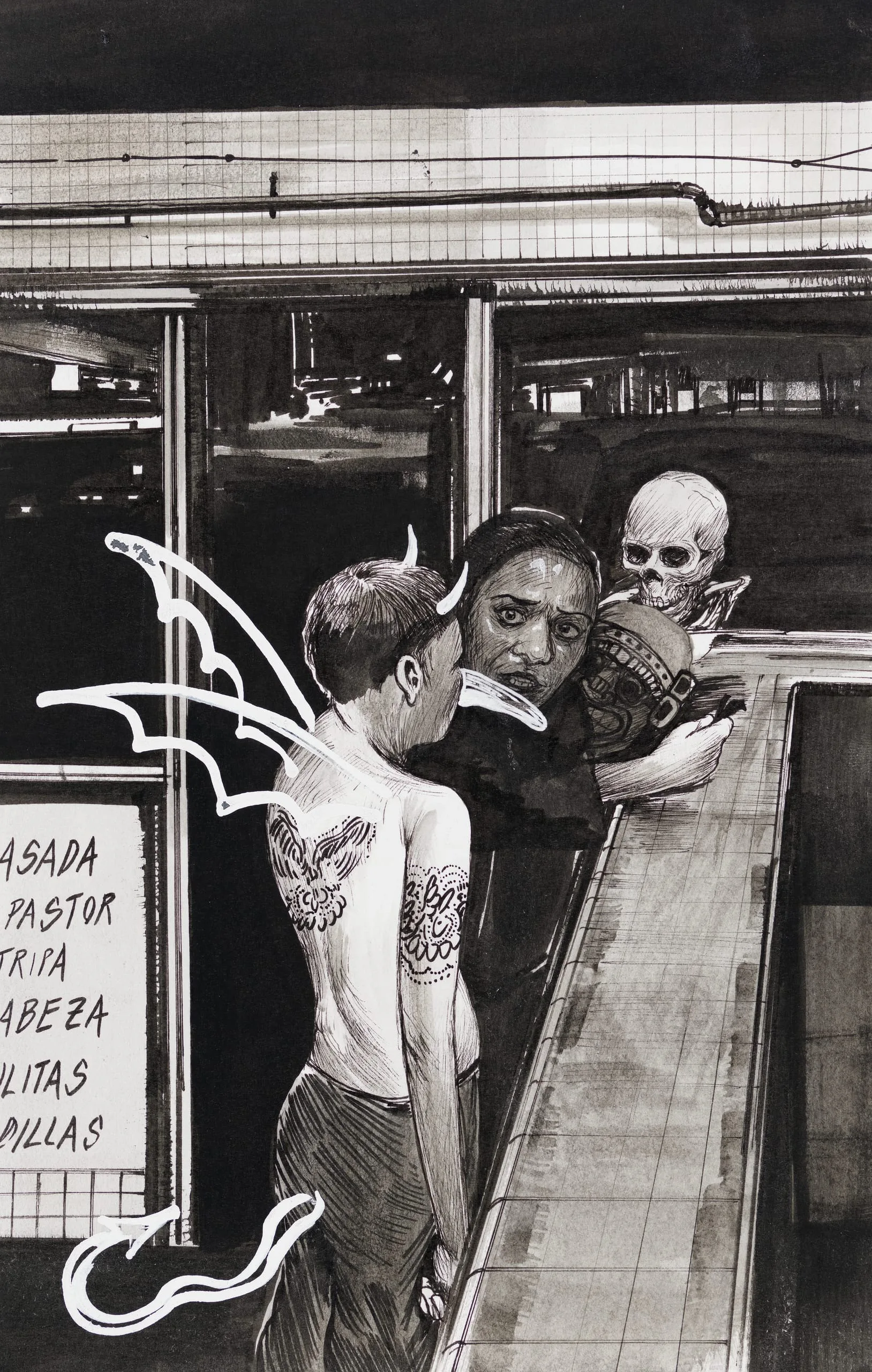 - Ink wash, graphite, and white out on Canson paper