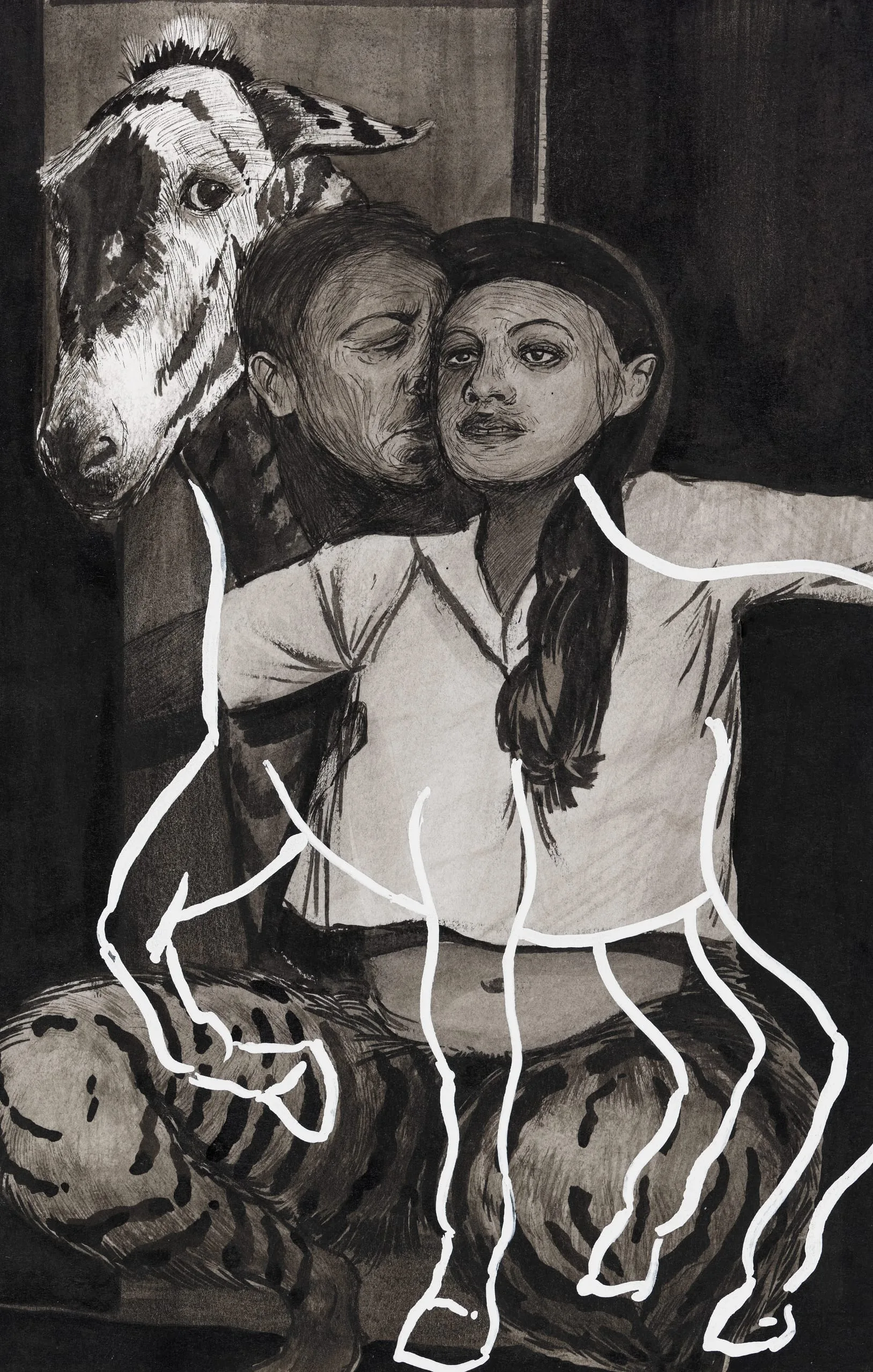 - Ink wash, graphite, and white out on Canson paper
