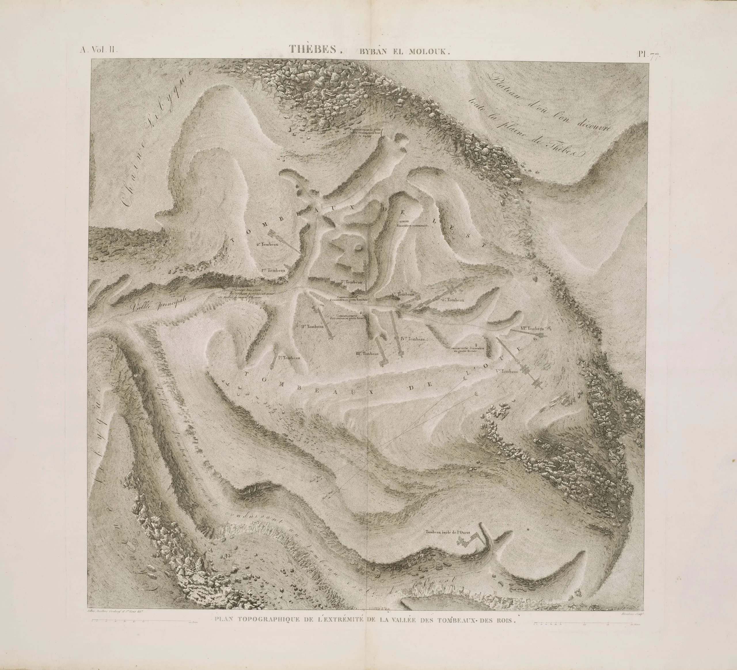 - Thèbes, Tombeaux des rois. Plan topographique de l'extrémité de la vallée des tombeaux des rois.