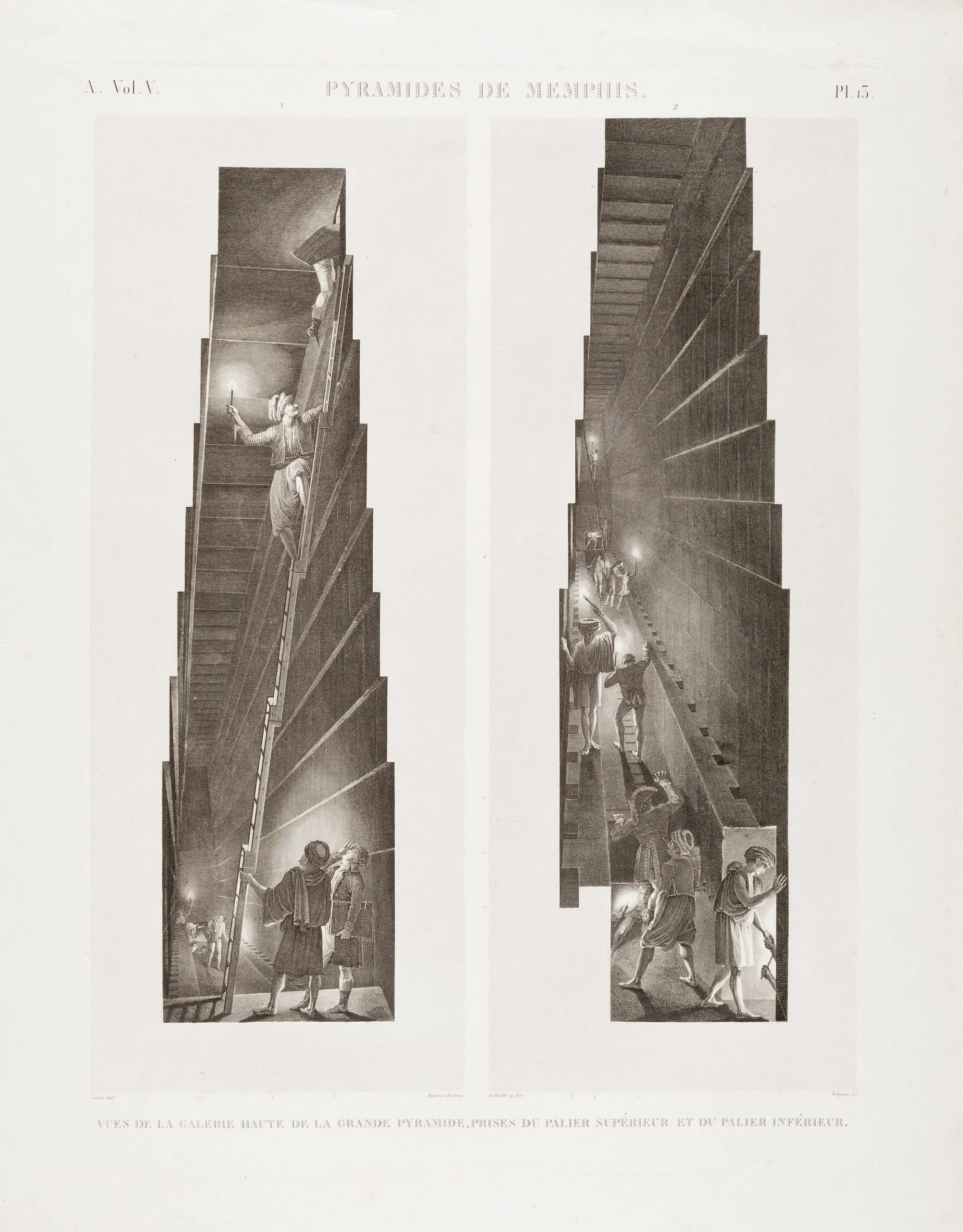 - Memphis et environs, Pyramides de Memphis. Vues de la galerie haute de la grande pyramide, prises du palier supérieur et du palier inférieur.