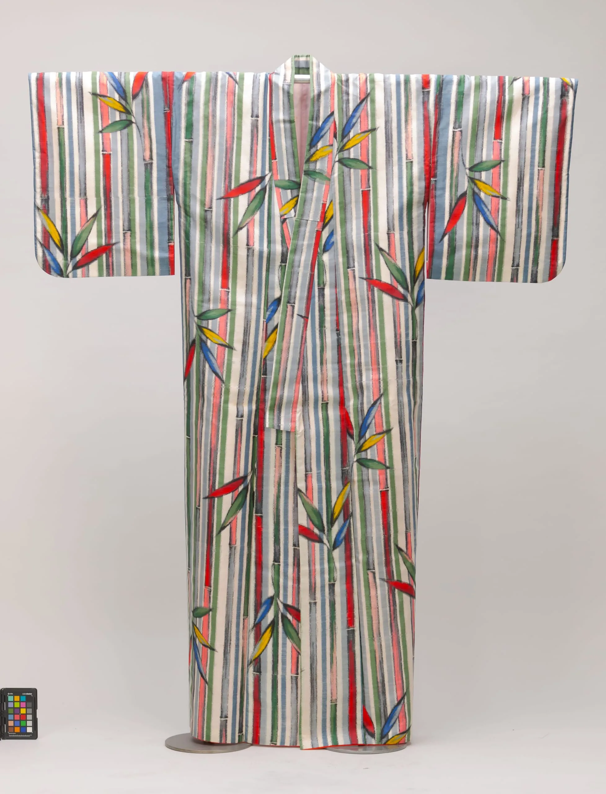 - Silk plain weave with stencil-printed warp and weft (heiyō kasuri meisen)