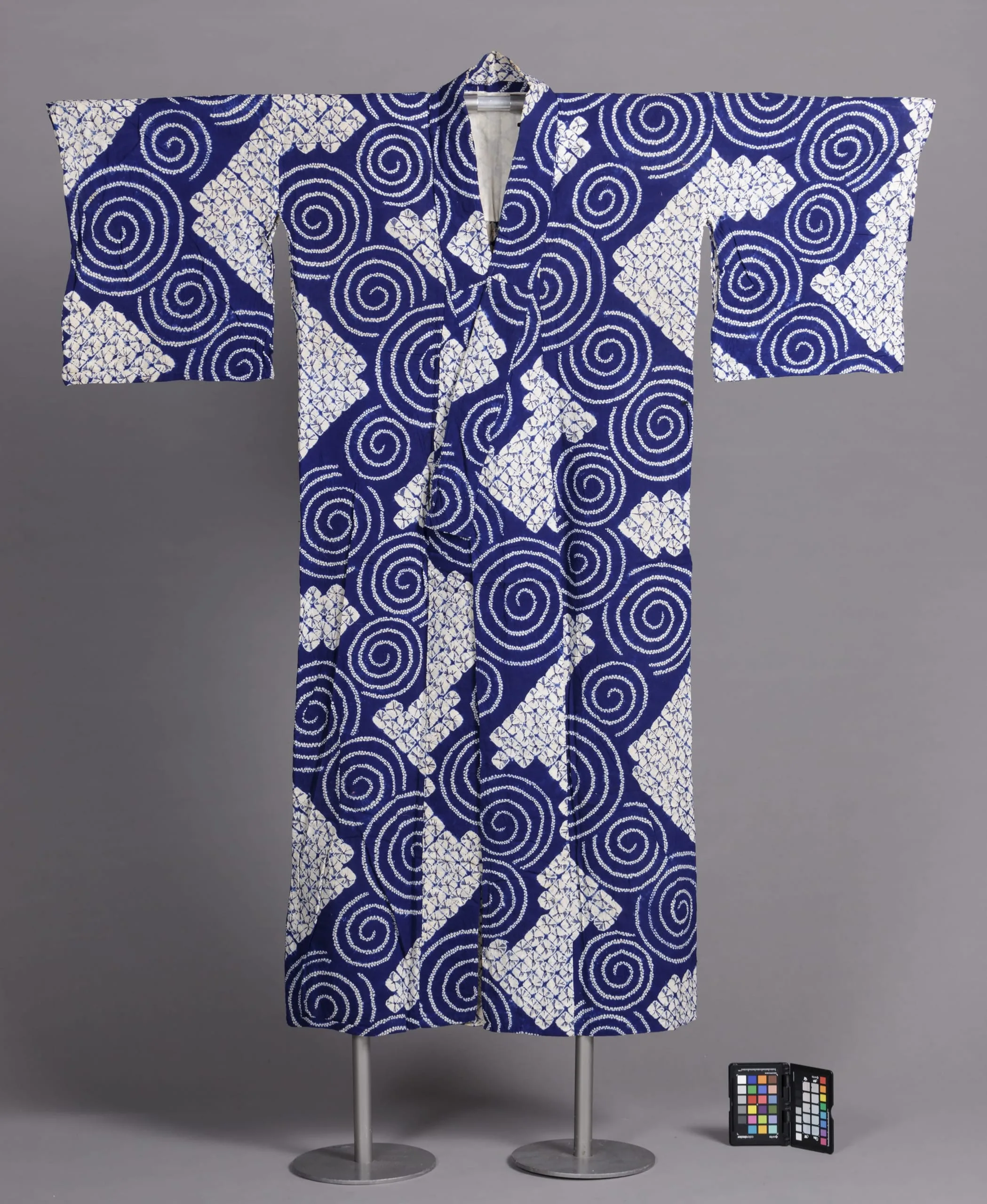 - Cotton plain weave, tie-resist-dyed ( shibori)- and stitch-resist-dyed (nuishime shibori)