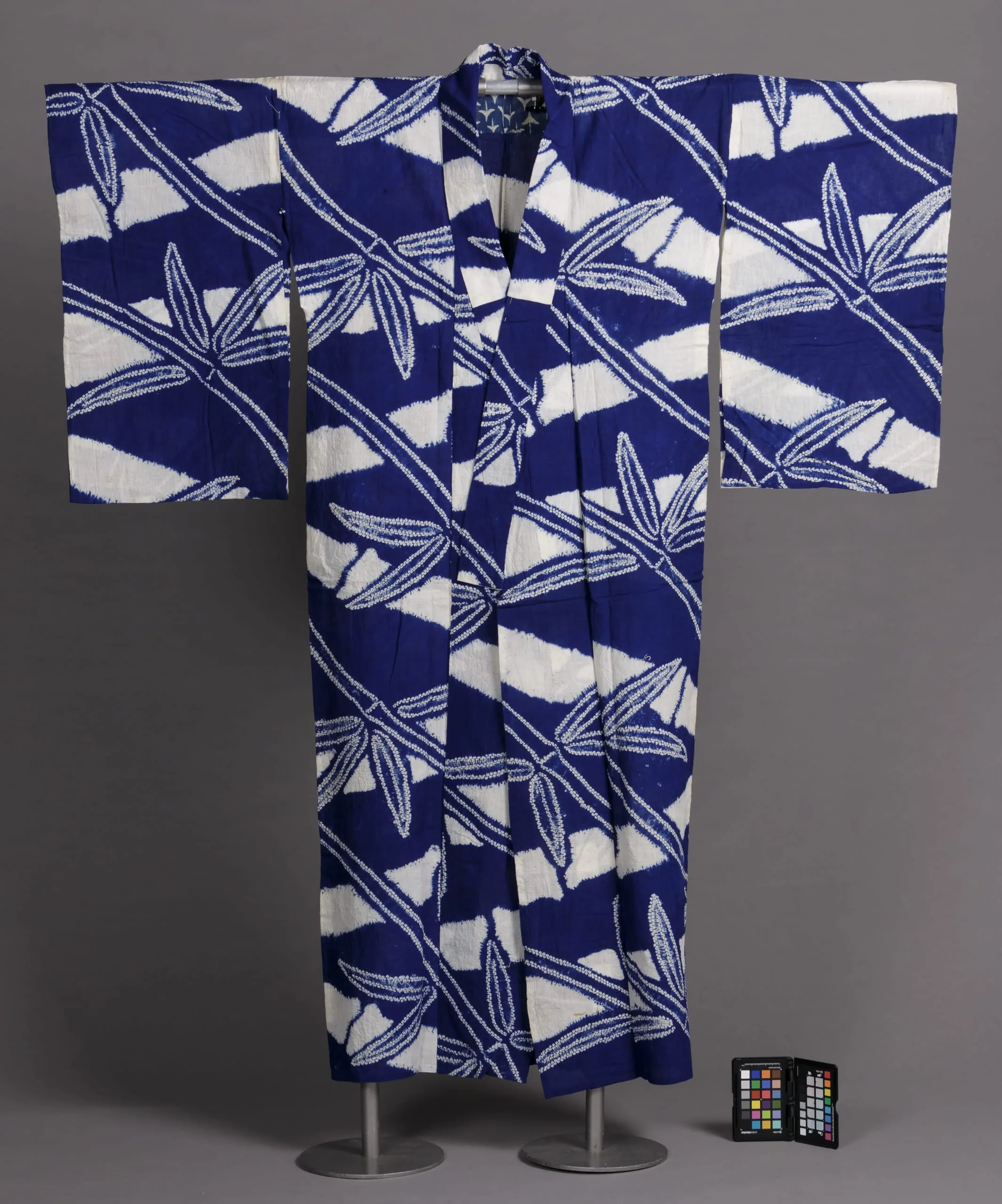 - Cotton plain weave, stitch-resist-dyed (nuishime shibori)