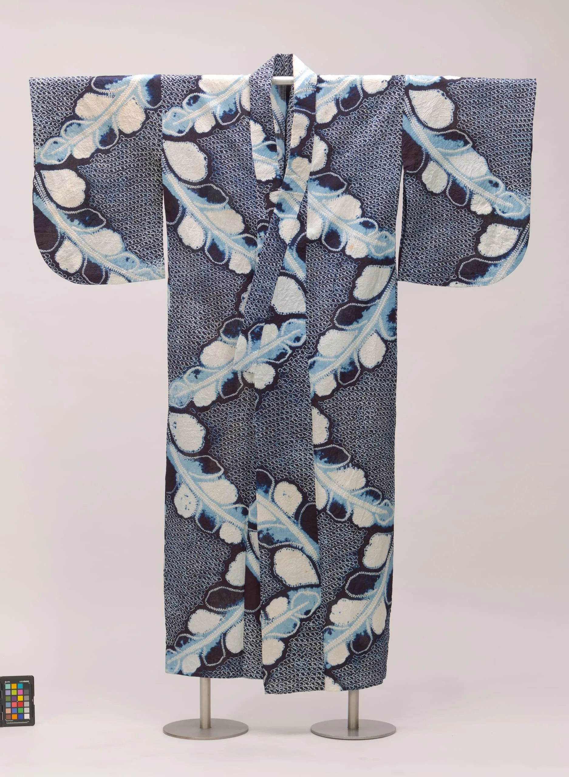 - Cotton plain weave, tie- and stitch-resist dyed (..., and nuishime shibori)