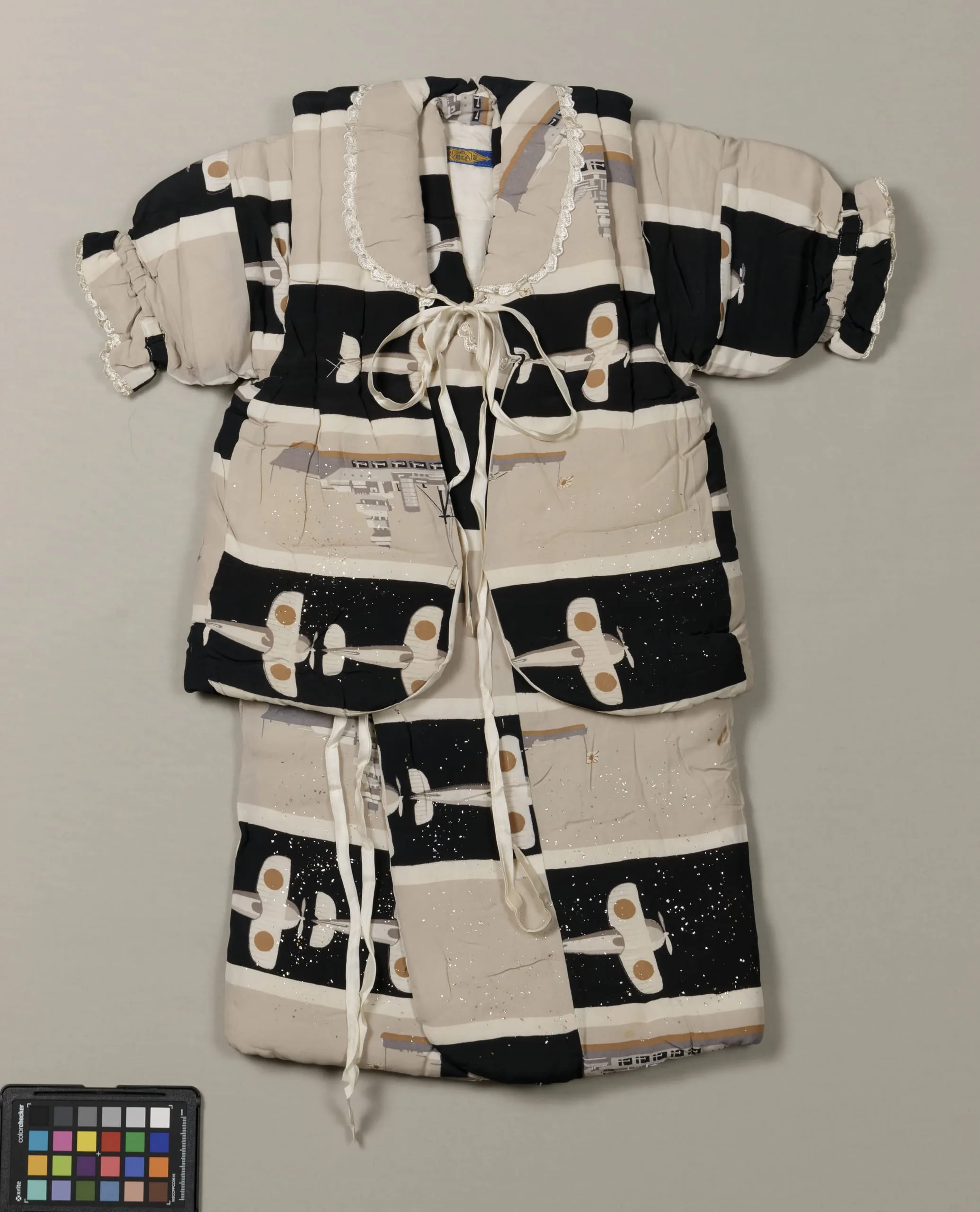 - Child's Ceremonial Ensemble (Vest (Chanchanko) and Kimono) with Battleships and Airplanes