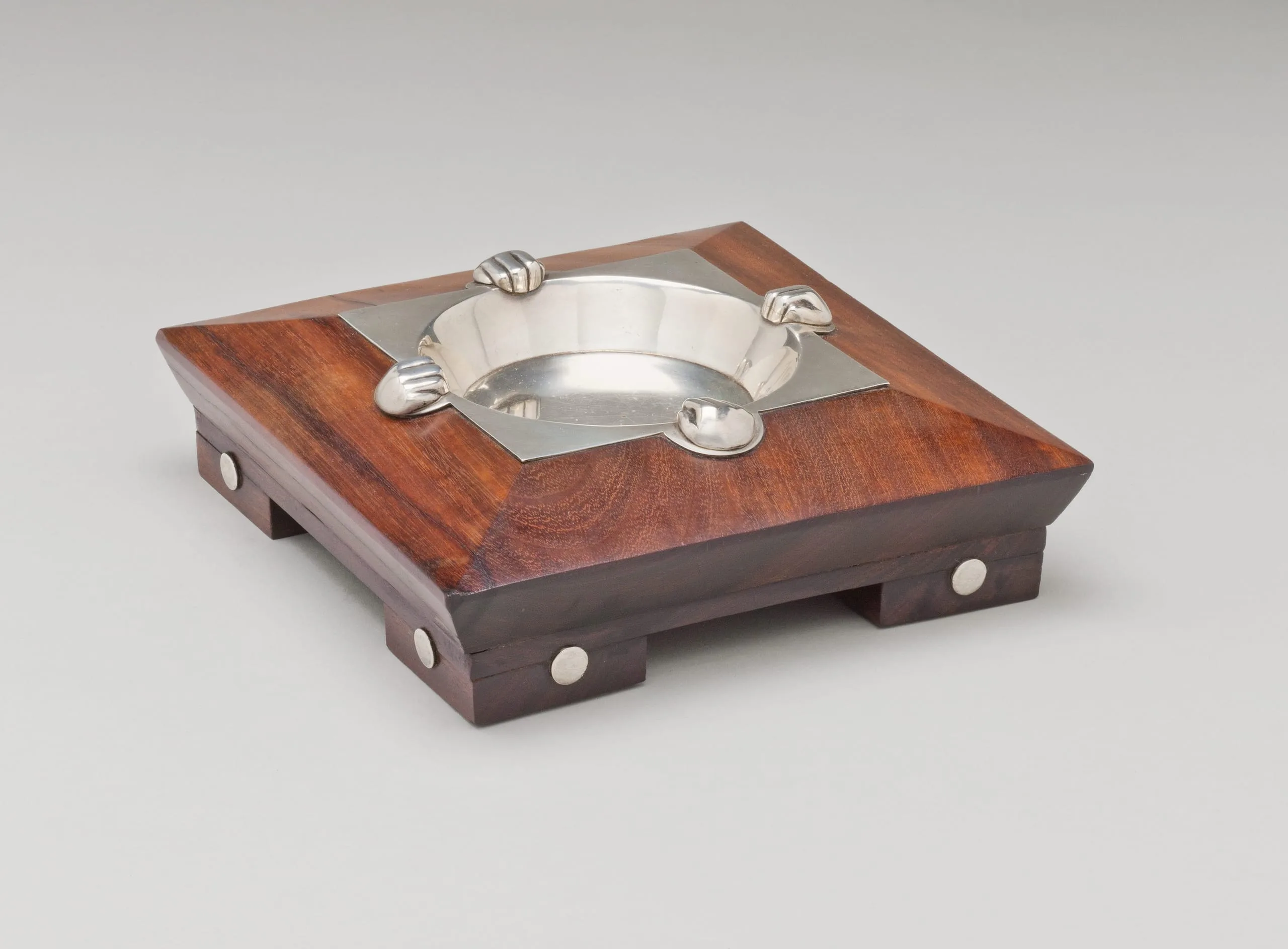 Wood and Silver Ashtray with Fists (Cenicero de plata y madera con puños)