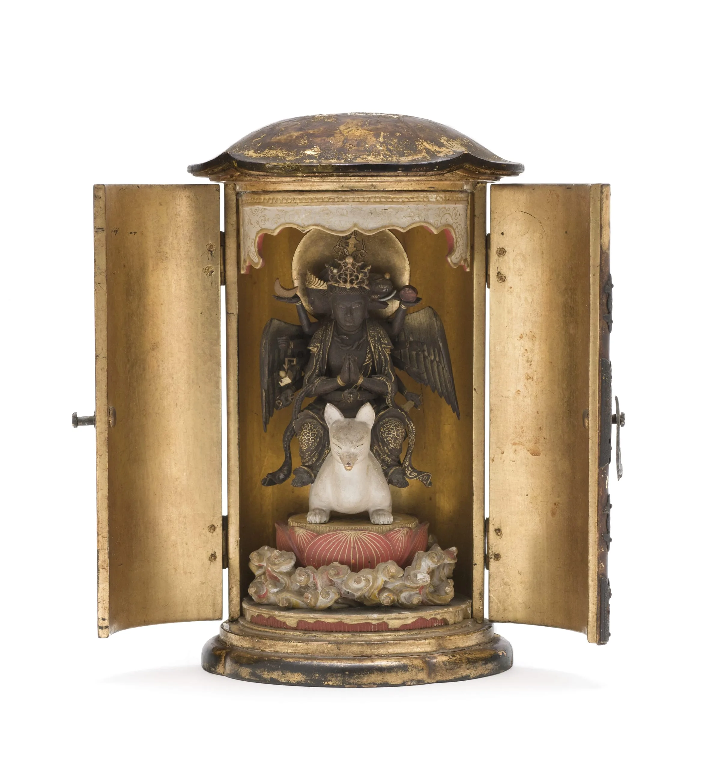 - Wood, pigments, gold, metal