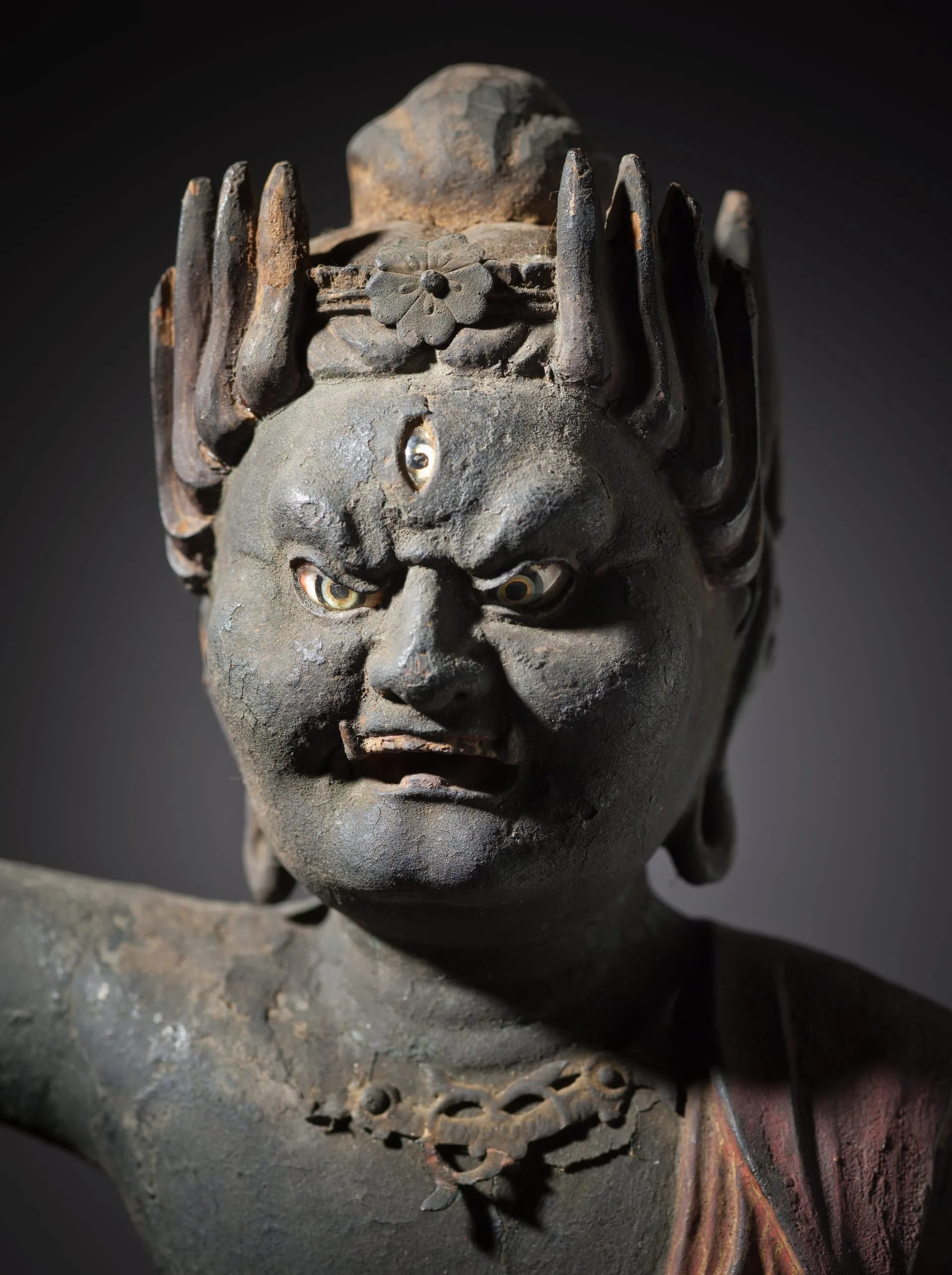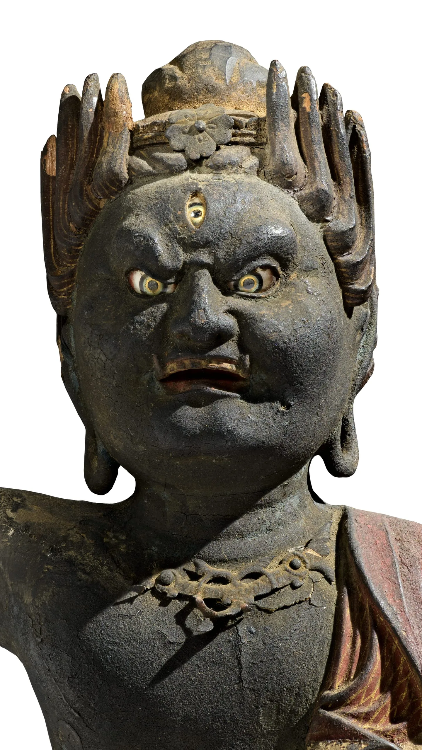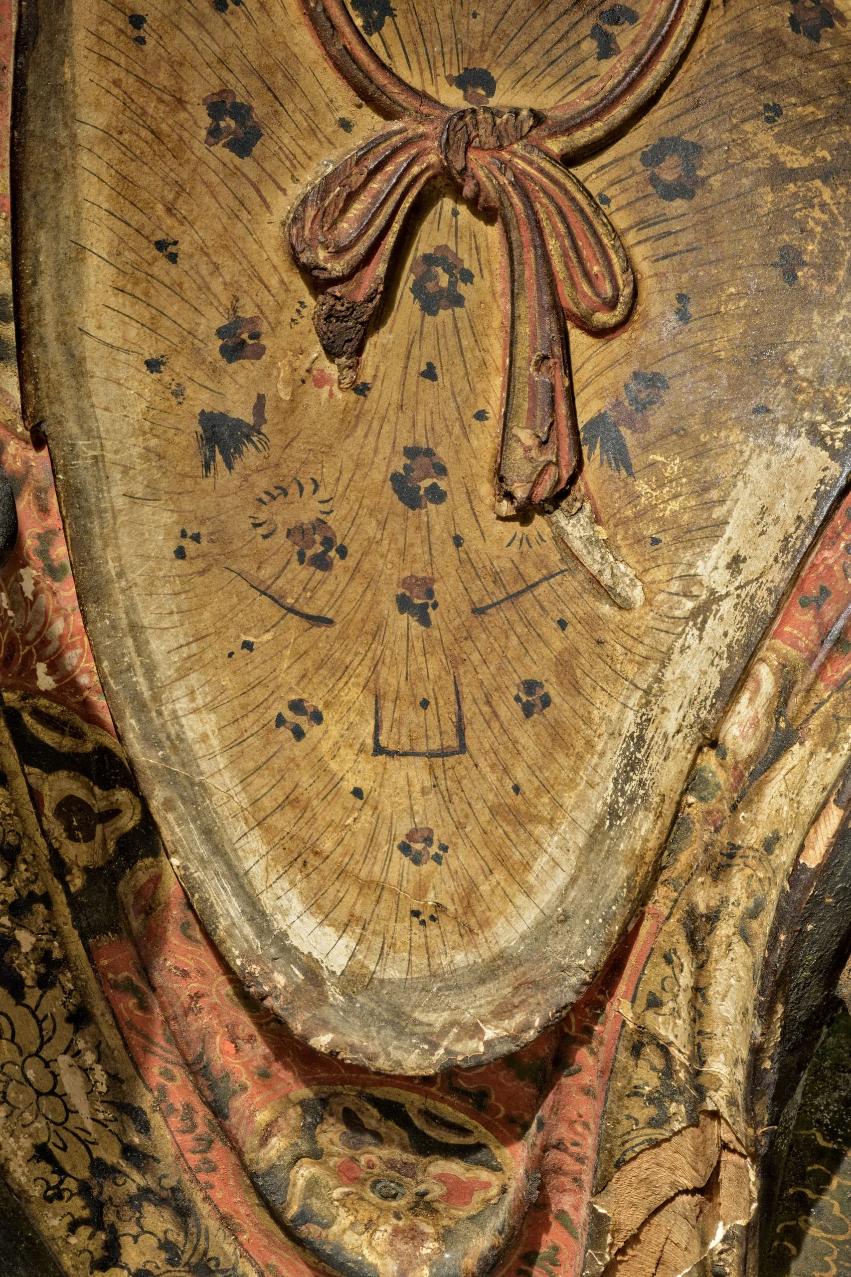 - Wood, pigments, gold leaf, crystal