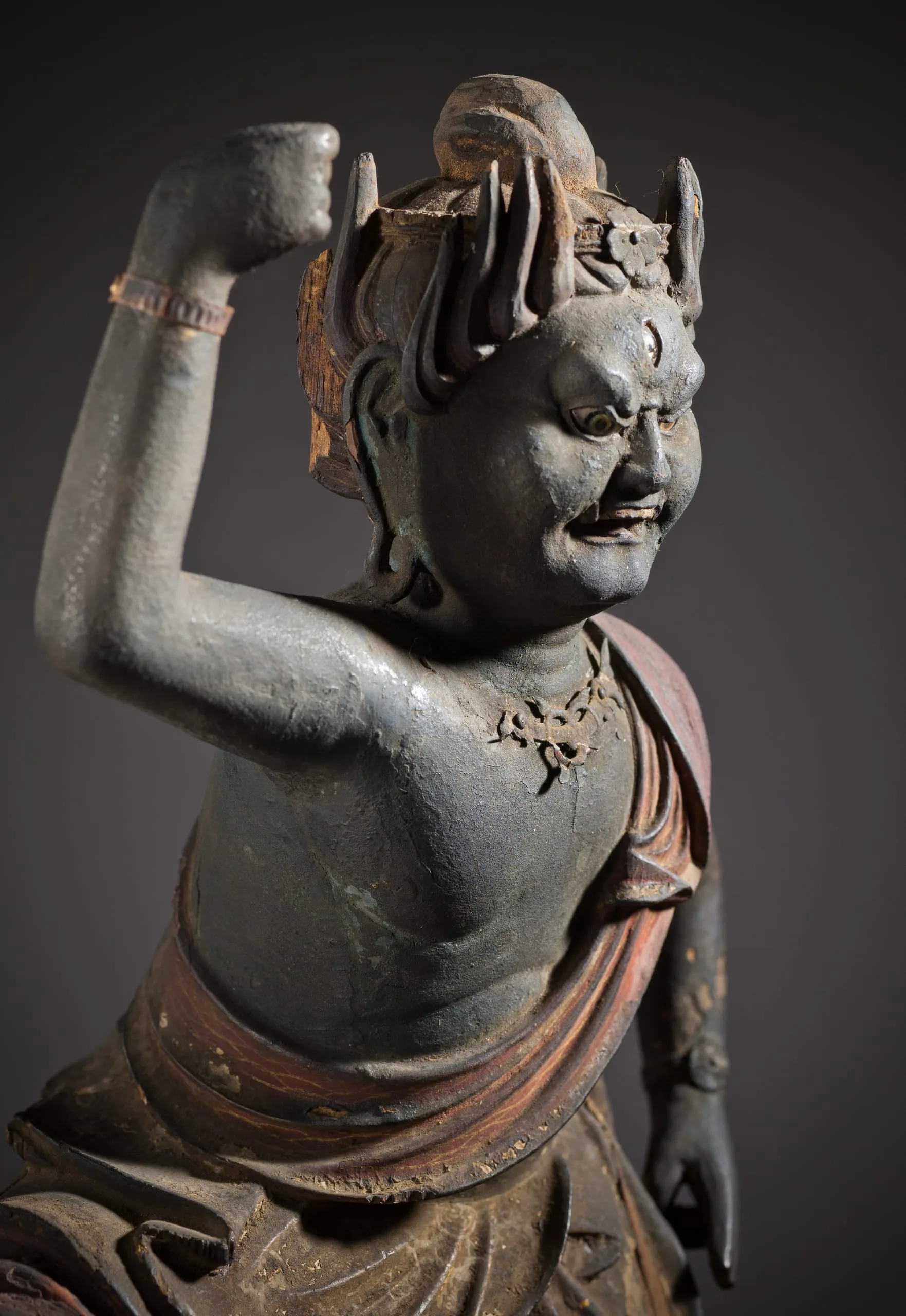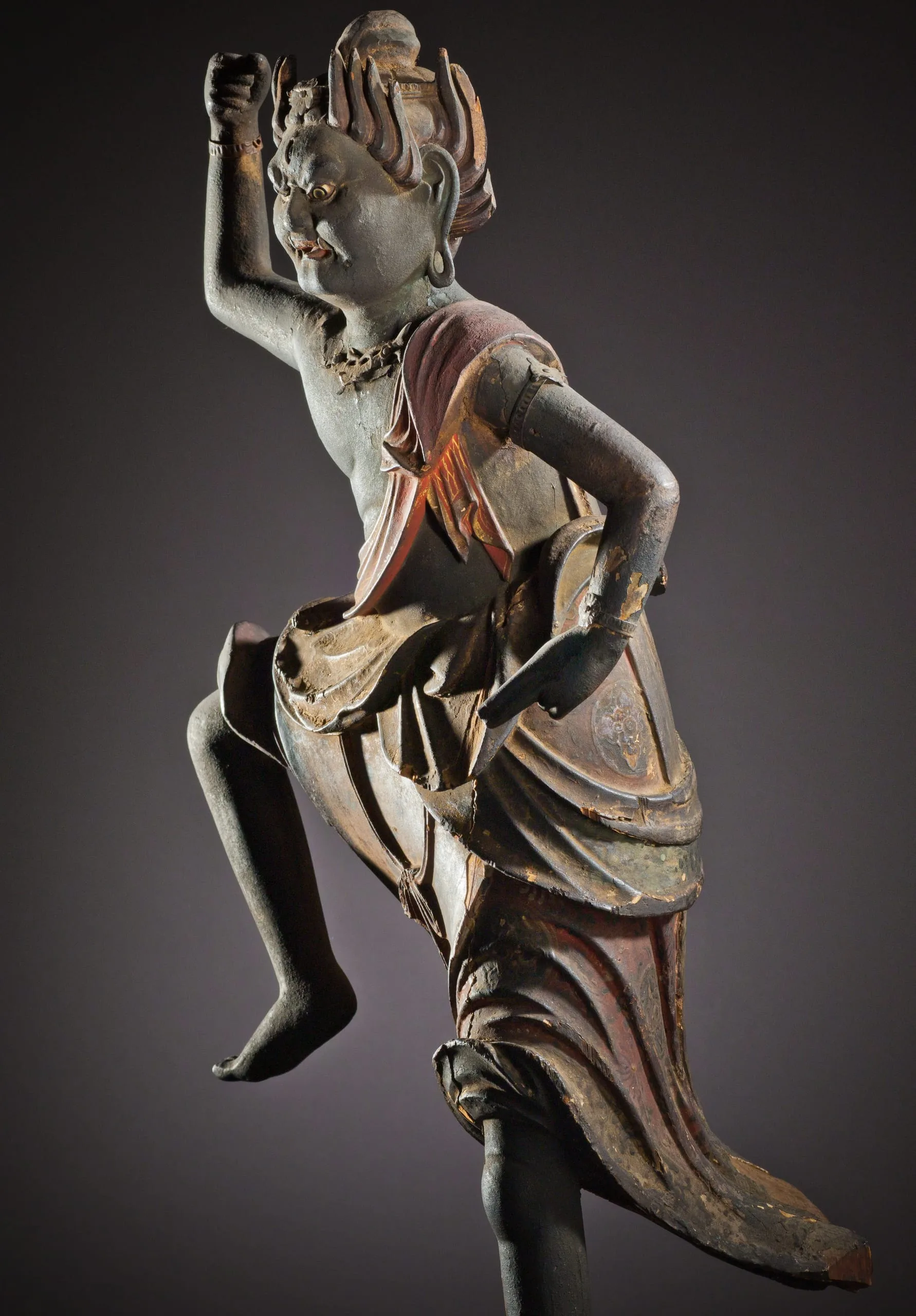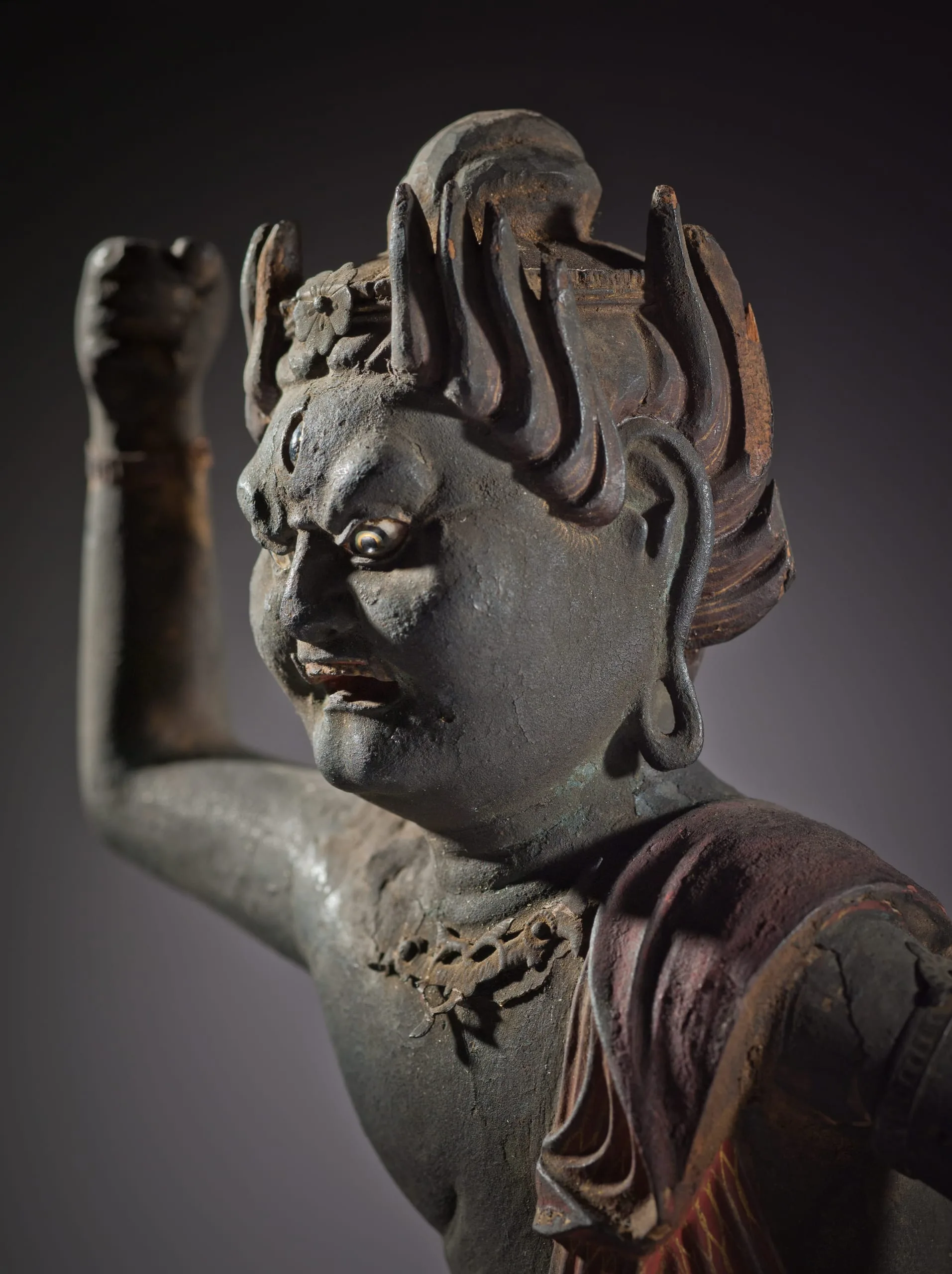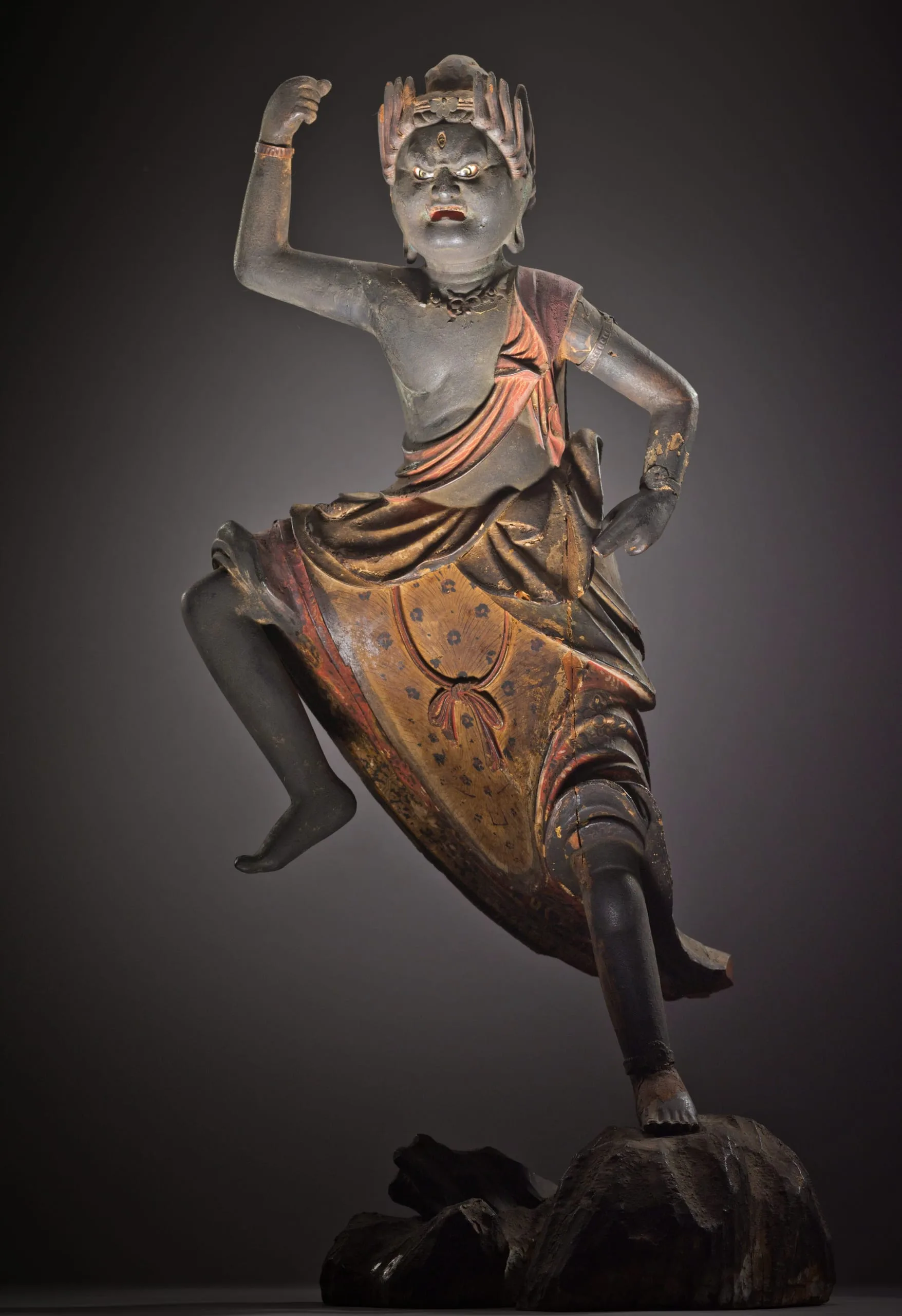 - Wood, pigments, gold leaf, crystal