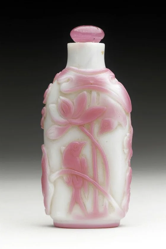 - Snuff Bottle (Biyanhu) with Birds, Lotus and Prunus Branch