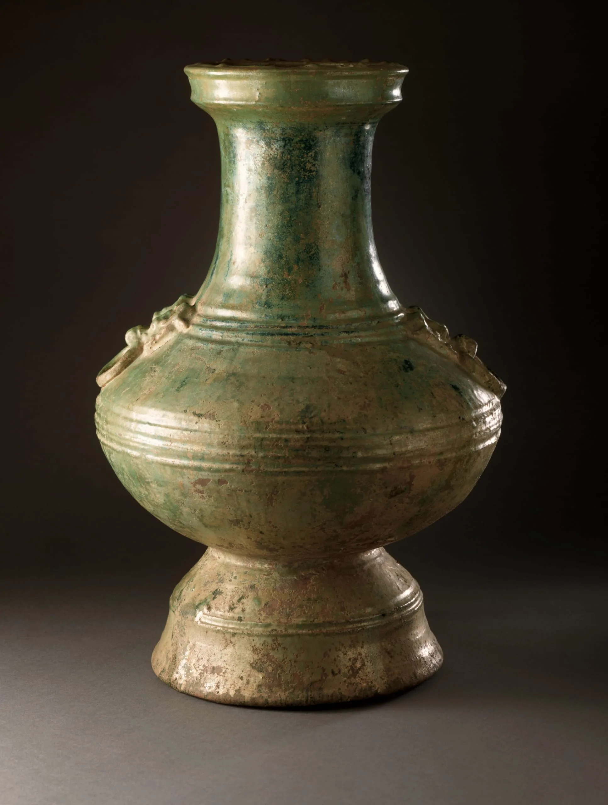 - Wheel-thrown earthenware with molded and applied decoration and green glaze