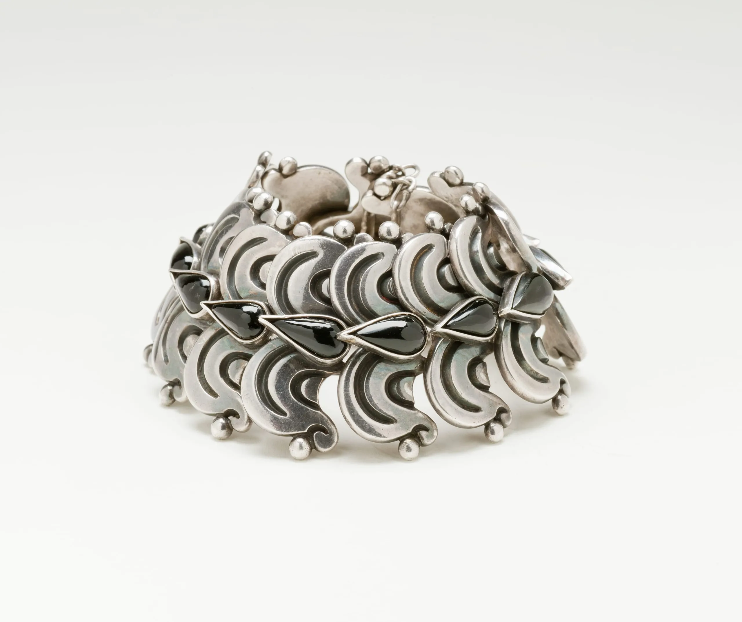 - Silver Feathers and Obsidian Cabochons Bracelet (Pulsera con plumas de plata y cabujones de obsidiana)