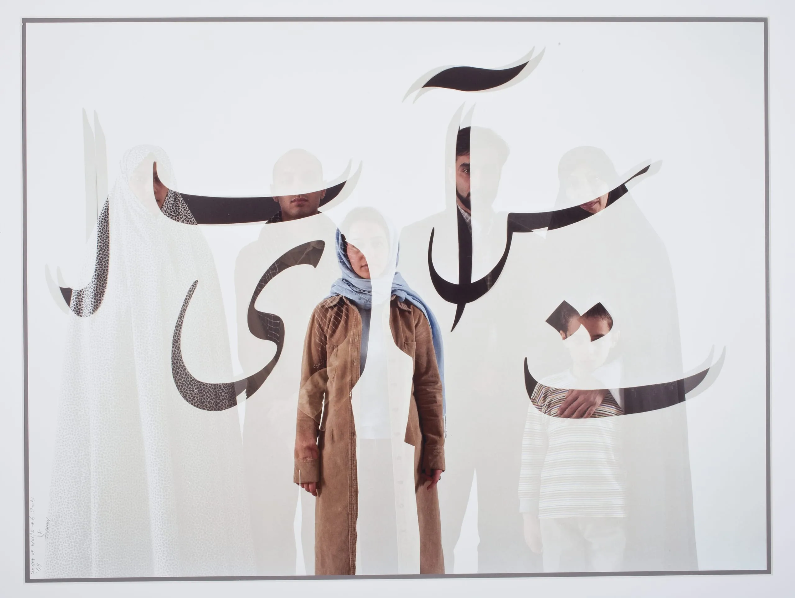 Sadegh Tirafkan was one of Iran's best known contemporary artists and his art was shaped in part by the circumstances of his early life. Born in Iraq and forcibly repatriated to Iran in 1971, as a teenager Tirafkan joined the bassiji or youth militia and fought in the war against Iraq; he was one of the boys sent into battle with a plastic key to Paradise around his neck and little else. Unlike most of his young comrades he survived the war and went on to study photography at the University of Fine Arts, Tehran. Since the late 1980s, he has participated in numerous solo exhibitions and international group shows. Through his photographs, videos, and wire sculptures, Tirafkan, like other Iranian artists of his generation, captures a society caught between the present and the past. Perhaps because Tirafkan learned about loss at an early age, his work often emphasizes suffering and isolation rather than political commentary. This is especially true of his 2002 series ‘Secret of Words.’ Here, his subjects project the stories of their lives through their faces, which they allow us, the viewers, to read. The interrelationship between their physically expressed stories and unspoken words is revealed through the letters behind the figures or superimposed on top of them. The repetitive letters are meant to suggest something akin to our A, B, Cs.