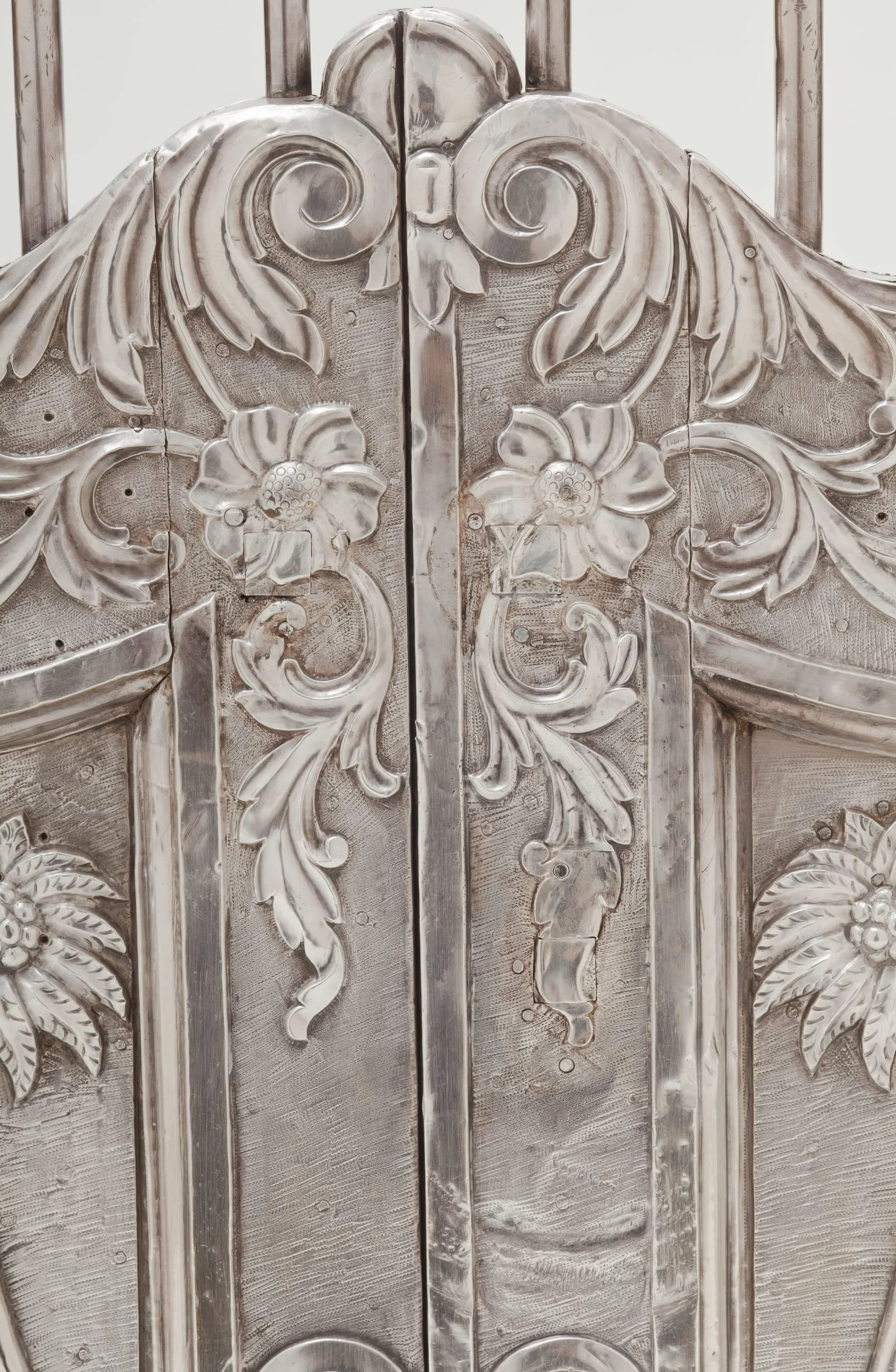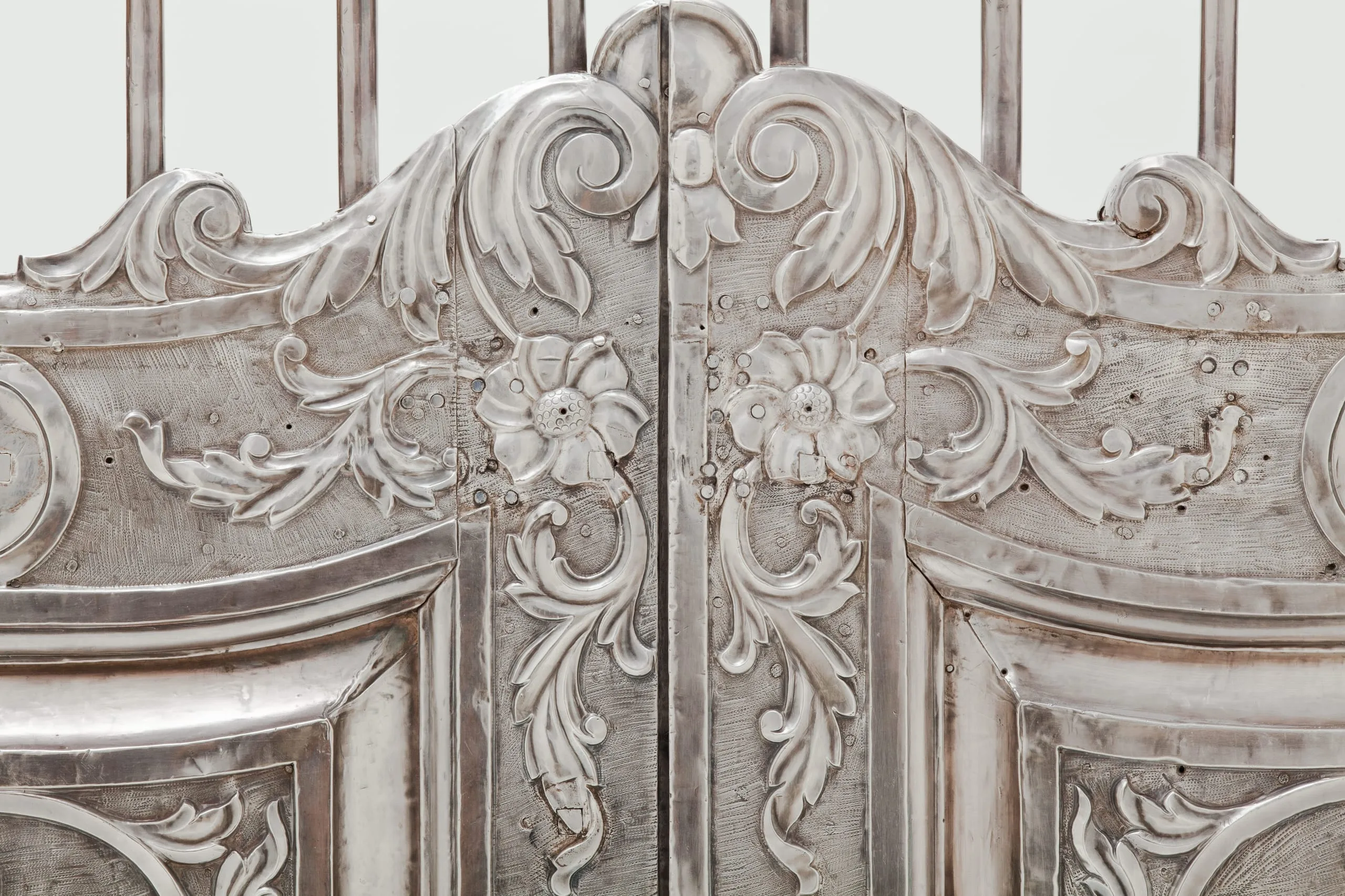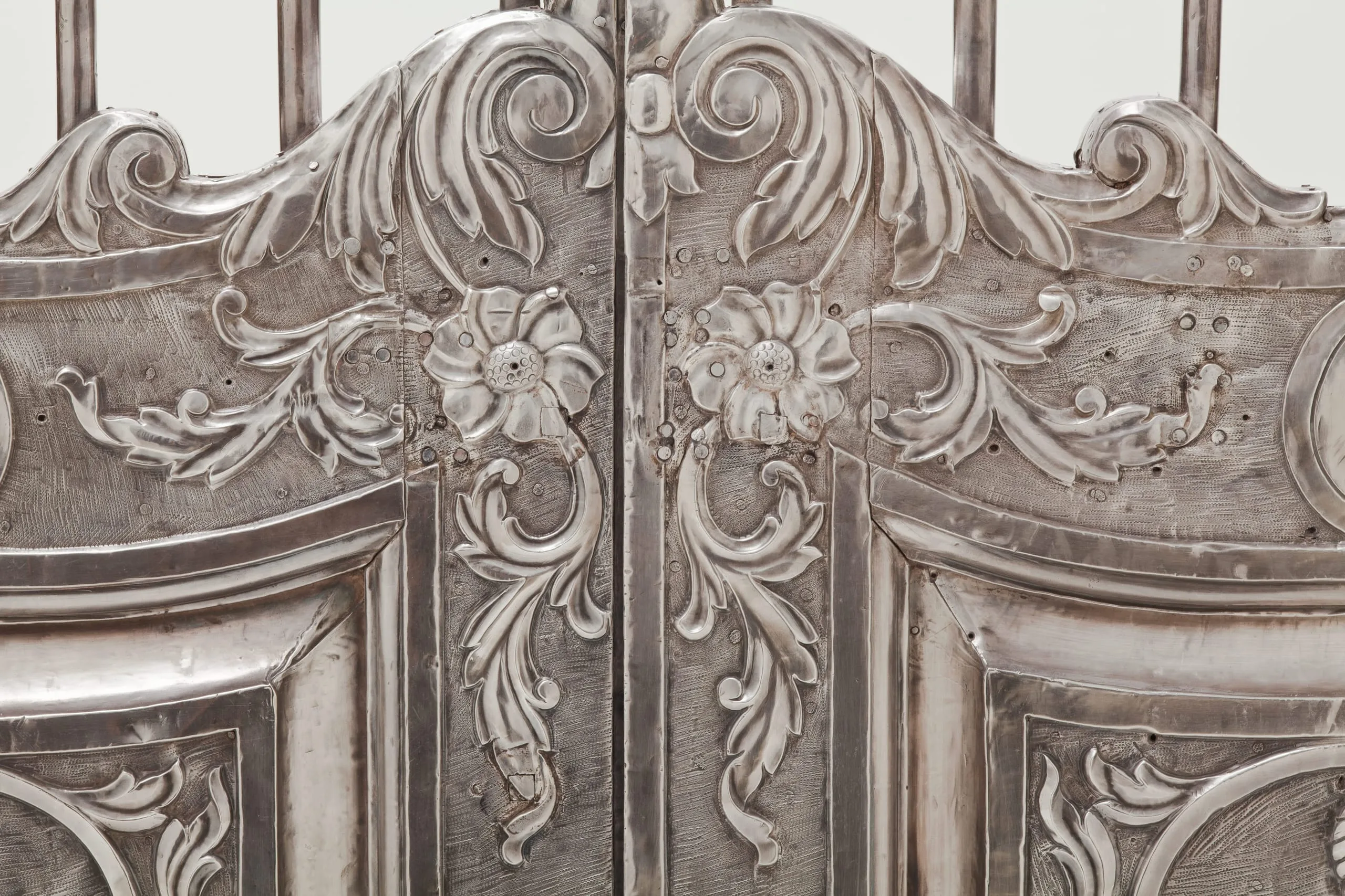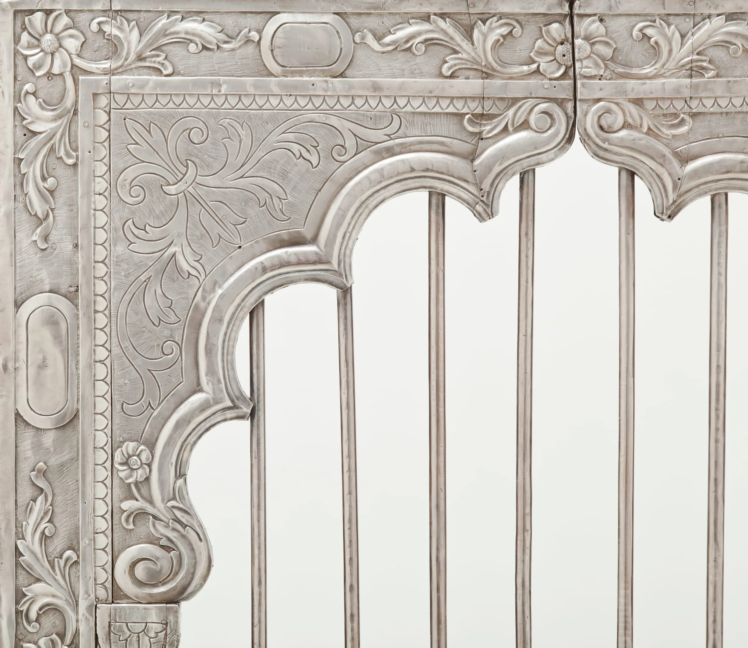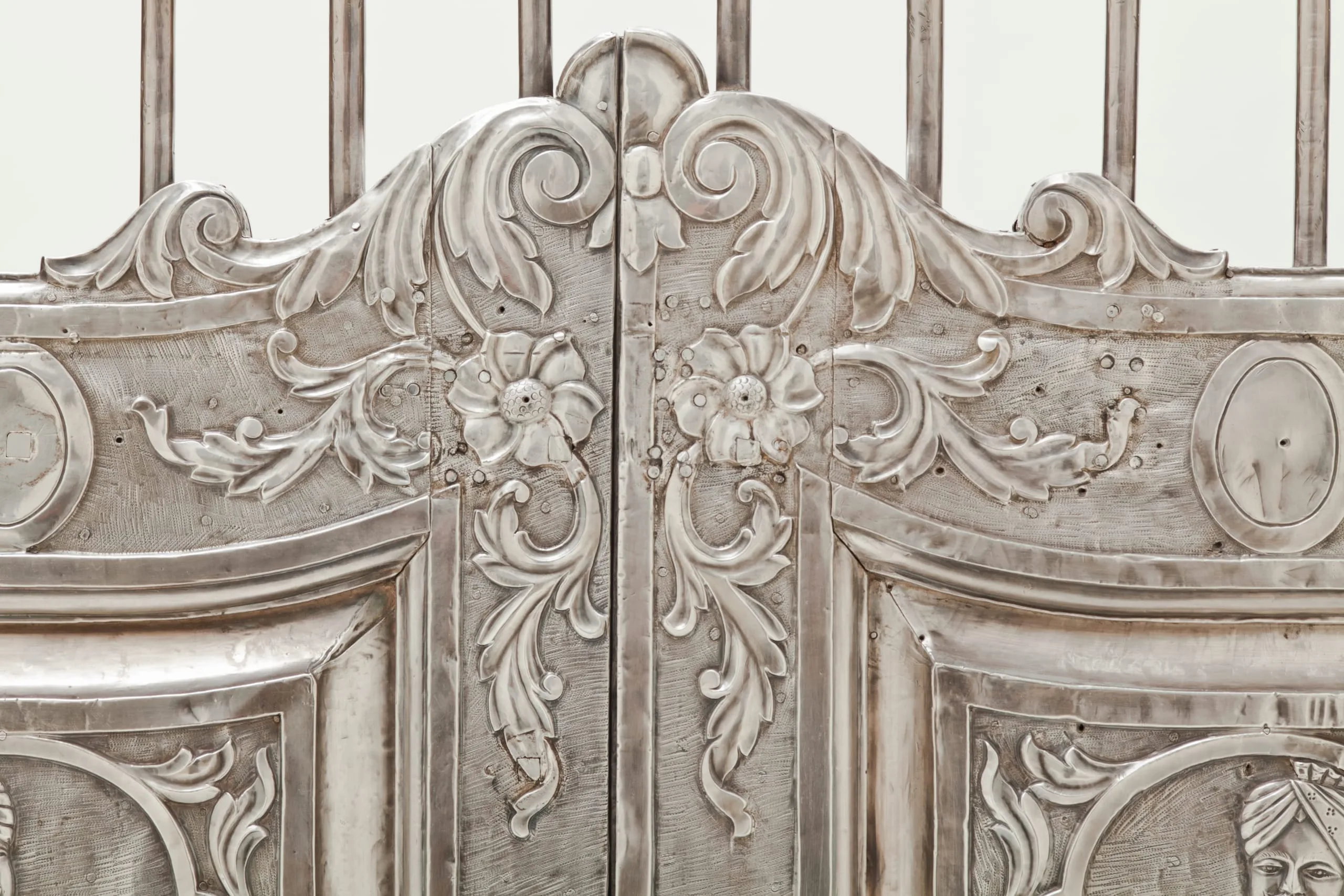 Silver shrine portals can be found throughout South Asia. Made of repoussé silver sheet over wood, they are a well-known, albeit little studied, feature of later South Asian religious and palatial architecture. They were created out of a shared artistic tradition, rather than a particular religious affiliation, as silver shrine portals are found at sites sacred to various sects of Hinduism, Jainism, Sikhism, and Islam. Although the medium and technique are constant, the individual portals and sets of doors are thematically differentiated according to the patron’s desires by appropriate variations in iconography and decorative motif.