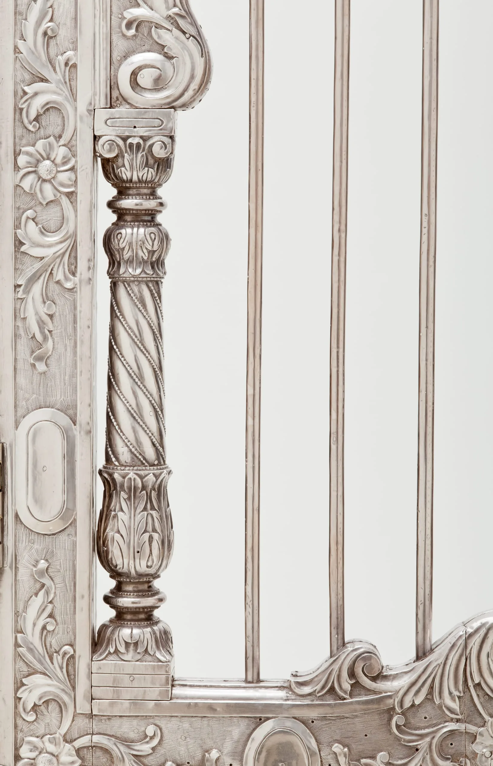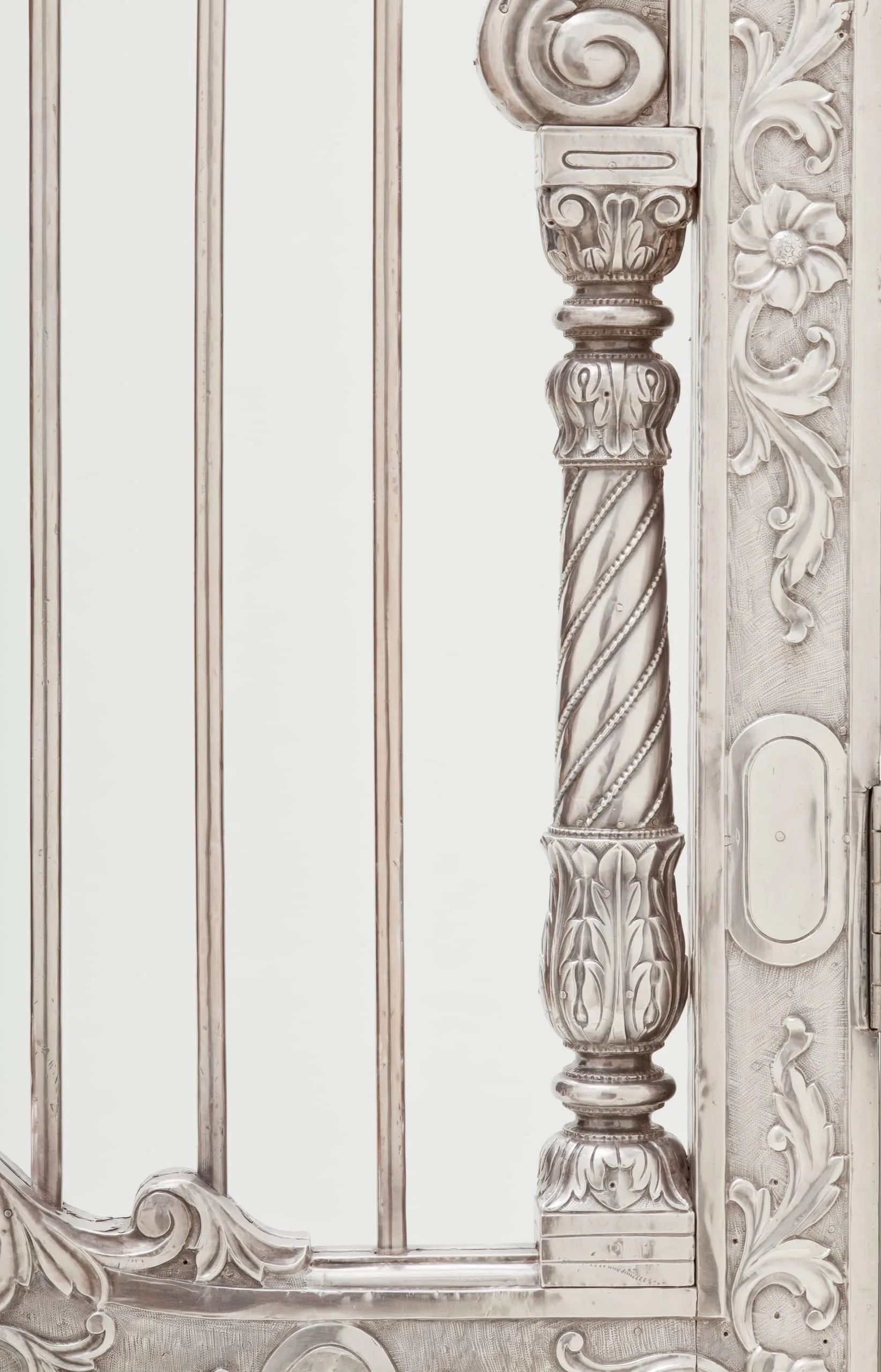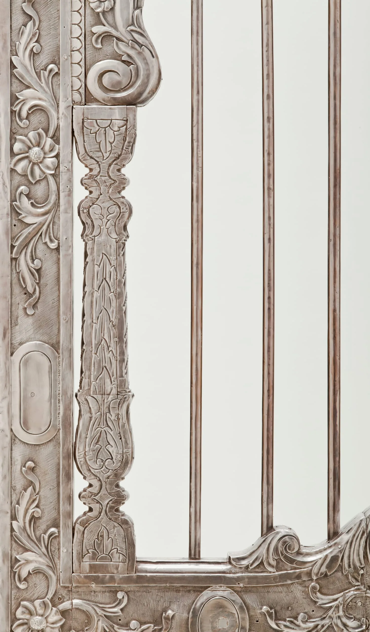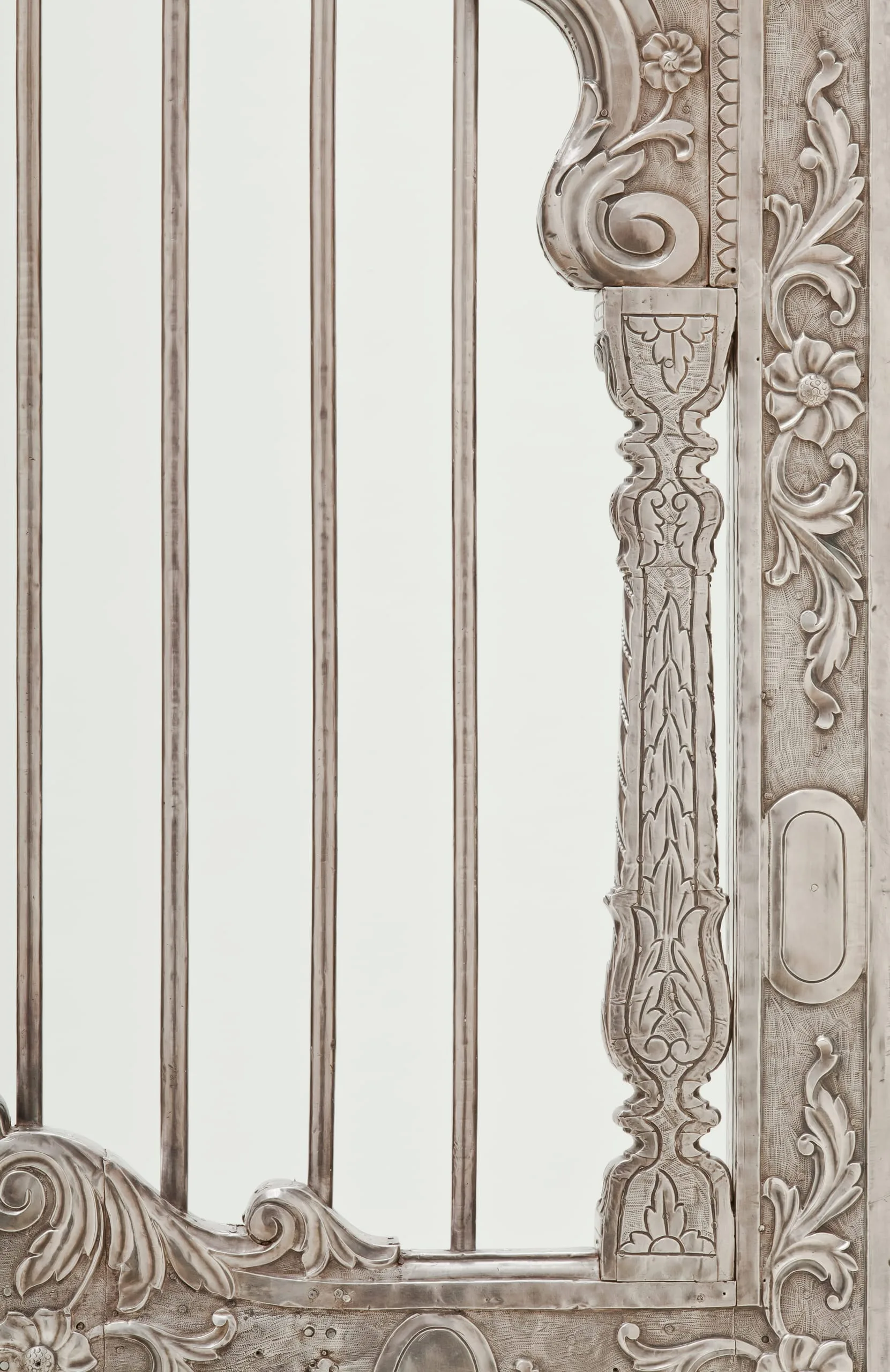 Silver shrine portals can be found throughout South Asia. Made of repoussé silver sheet over wood, they are a well-known, albeit little studied, feature of later South Asian religious and palatial architecture. They were created out of a shared artistic tradition, rather than a particular religious affiliation, as silver shrine portals are found at sites sacred to various sects of Hinduism, Jainism, Sikhism, and Islam. Although the medium and technique are constant, the individual portals and sets of doors are thematically differentiated according to the patron’s desires by appropriate variations in iconography and decorative motif.