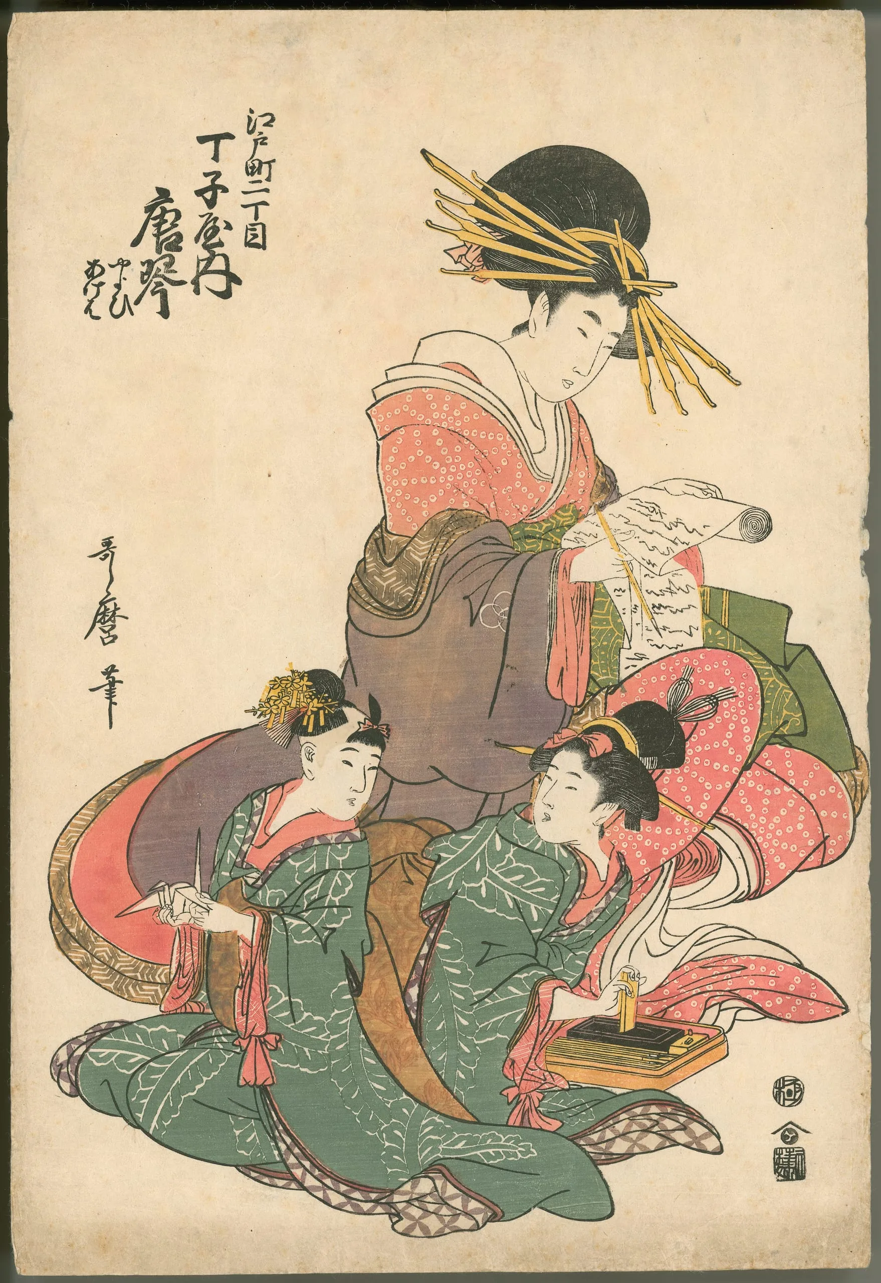 - Karagoto of Chōjiya with Attendants Yayoi and Ageha