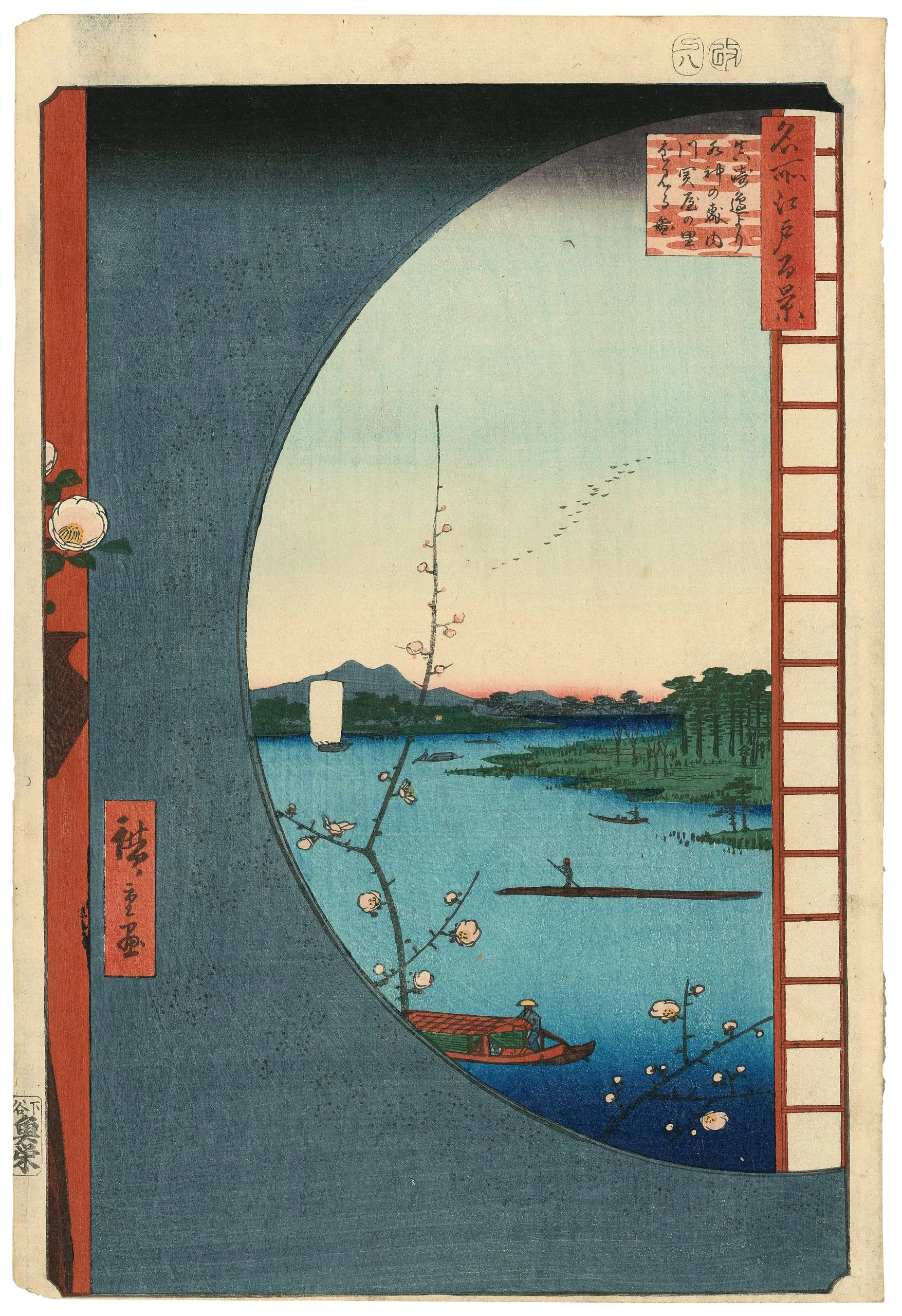 - View from Massaki of Suijin Shrine, Uchigawa Inlet, and Sekiya