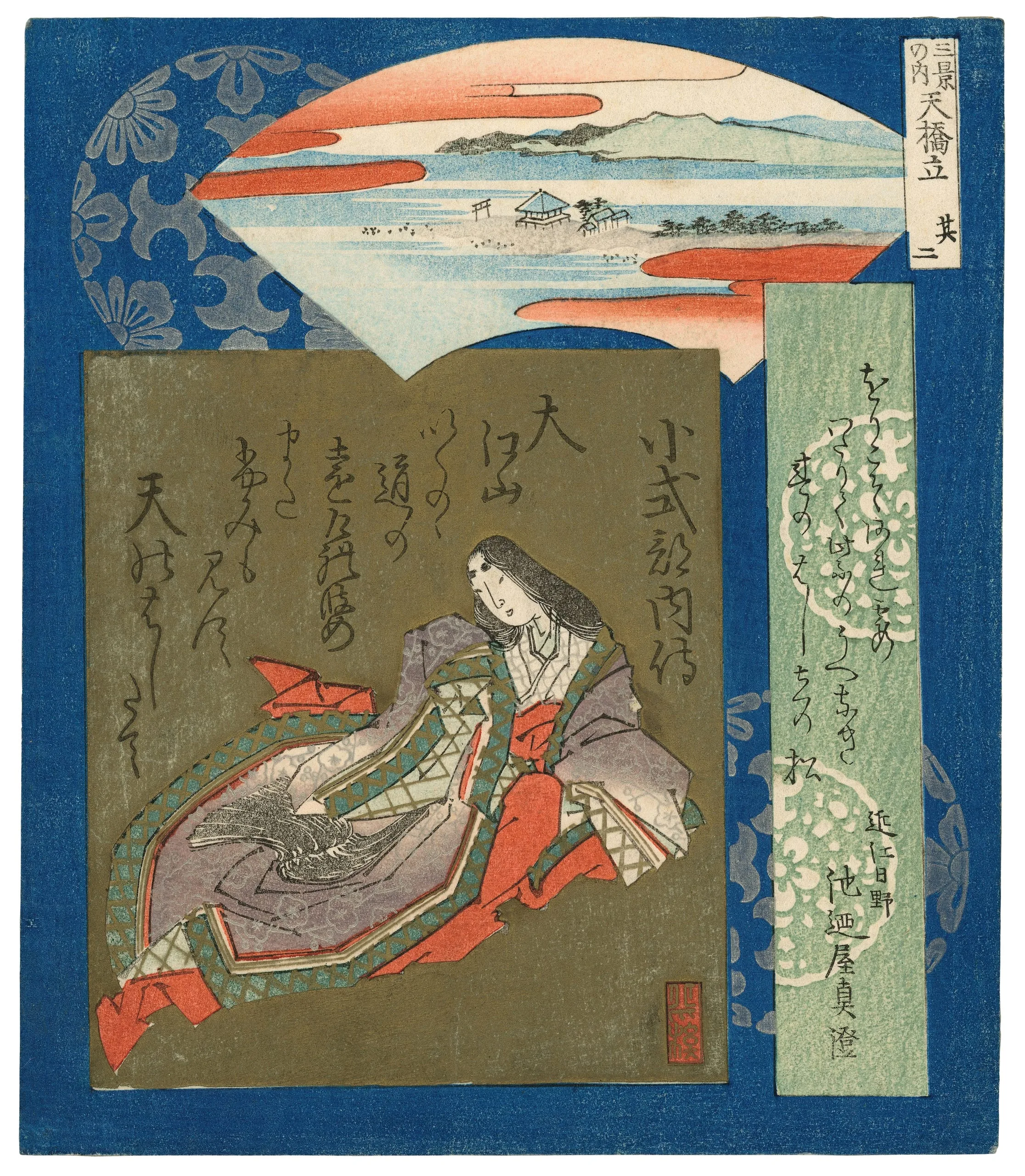 - Surimono; color woodblock print with brass and tin