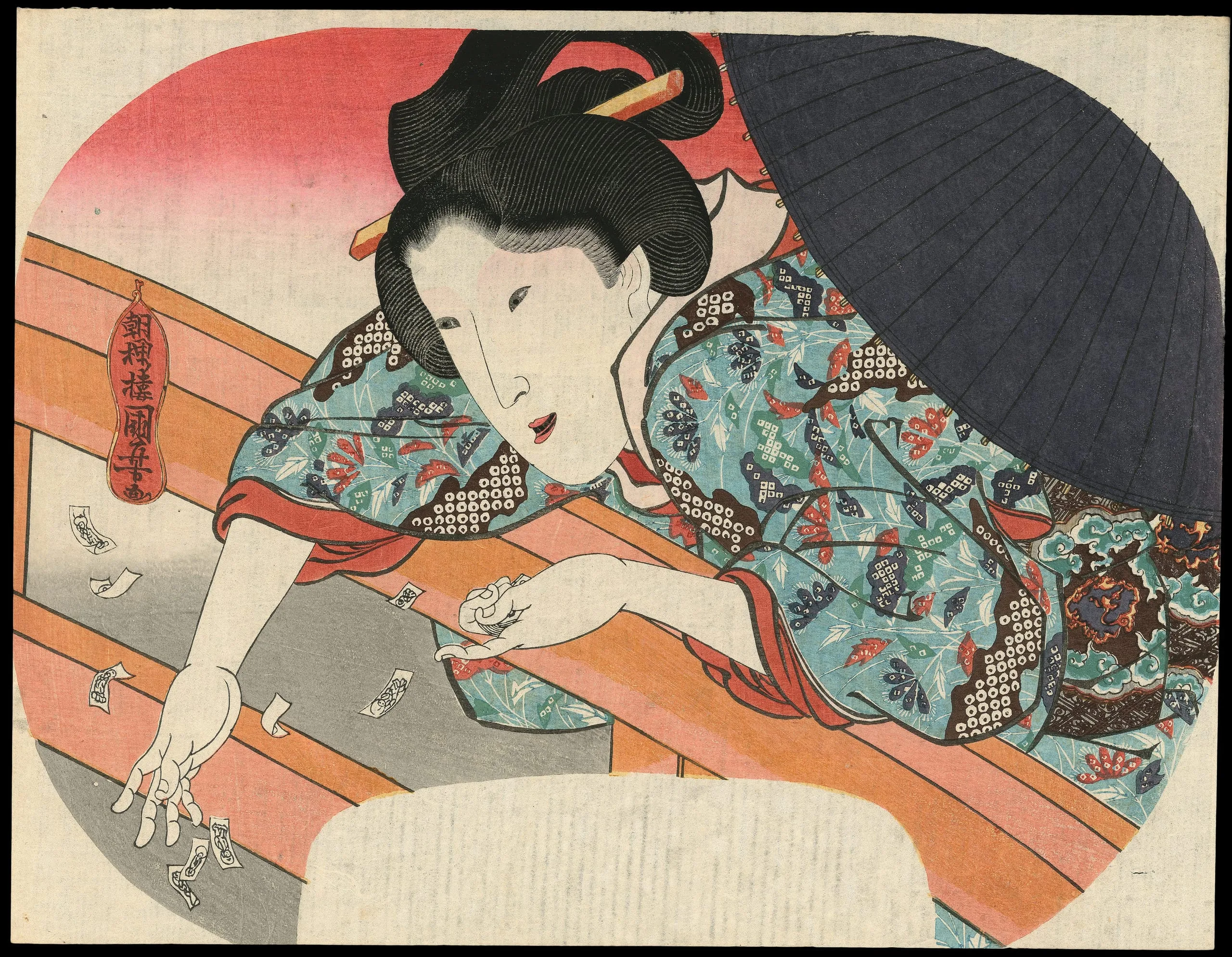 - Uchiwa-e (fan print); color woodblock print