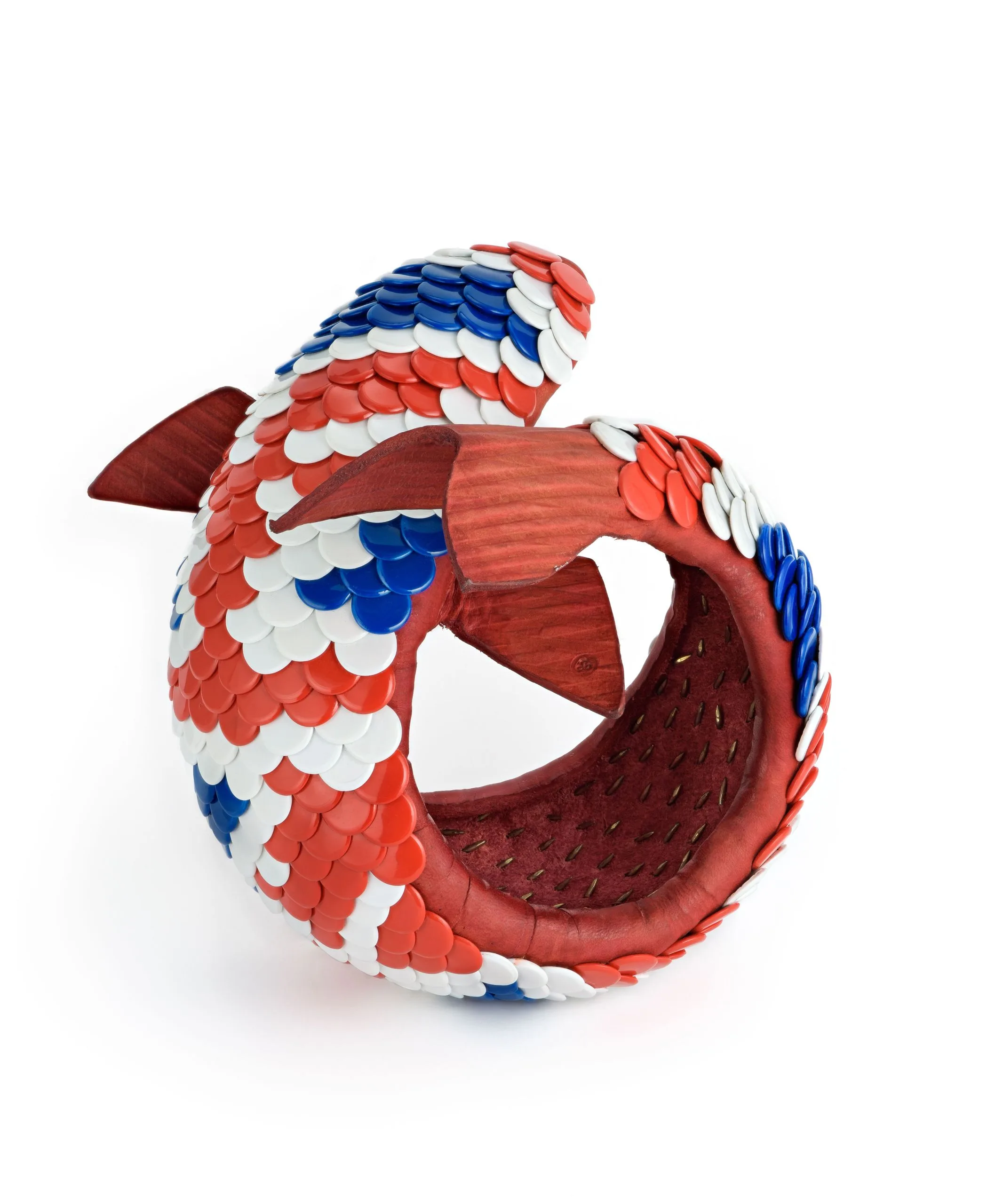 - Leather, thumbtacks, silver