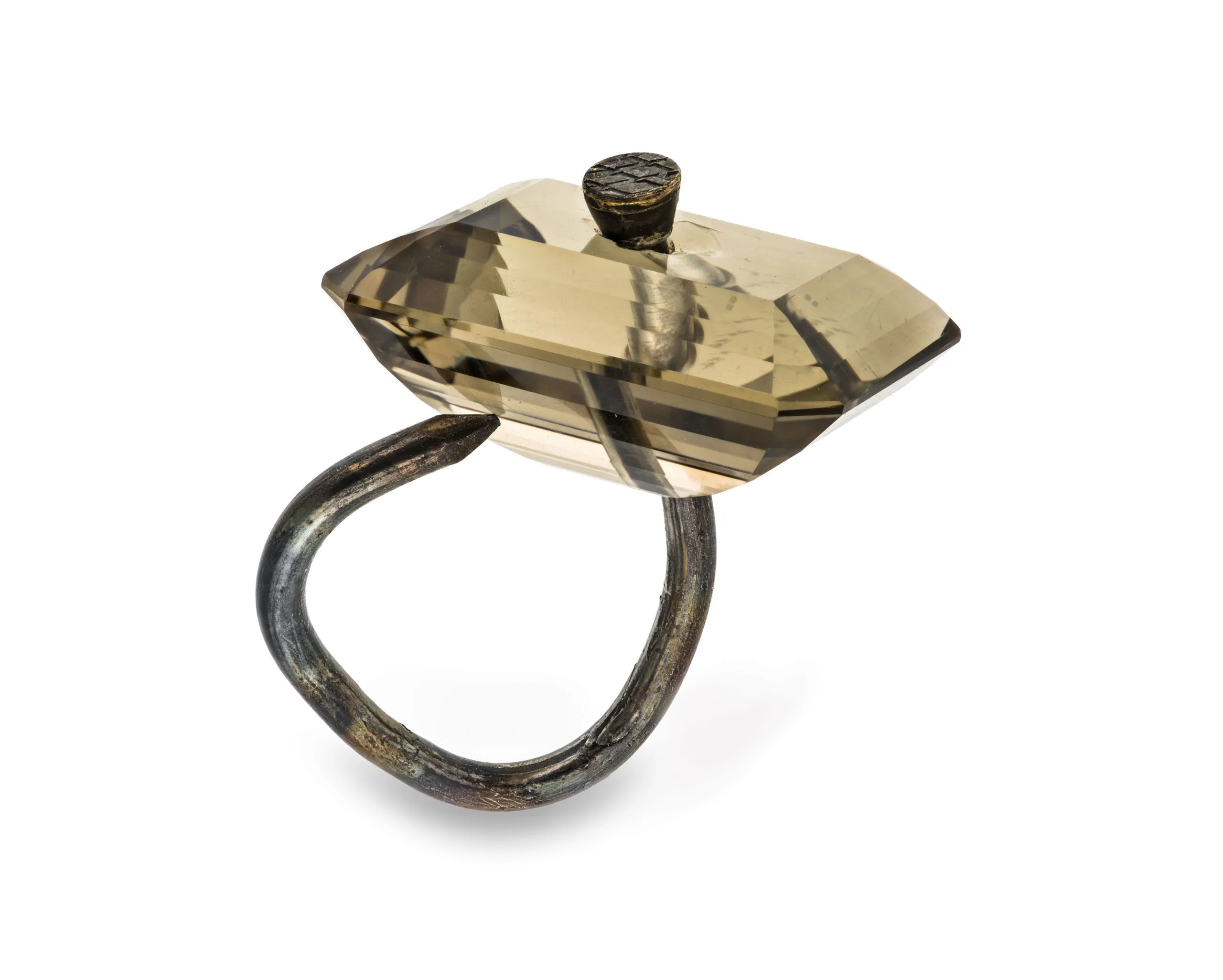 - 'Smoky Quartz on Countersink Nail' Ring
