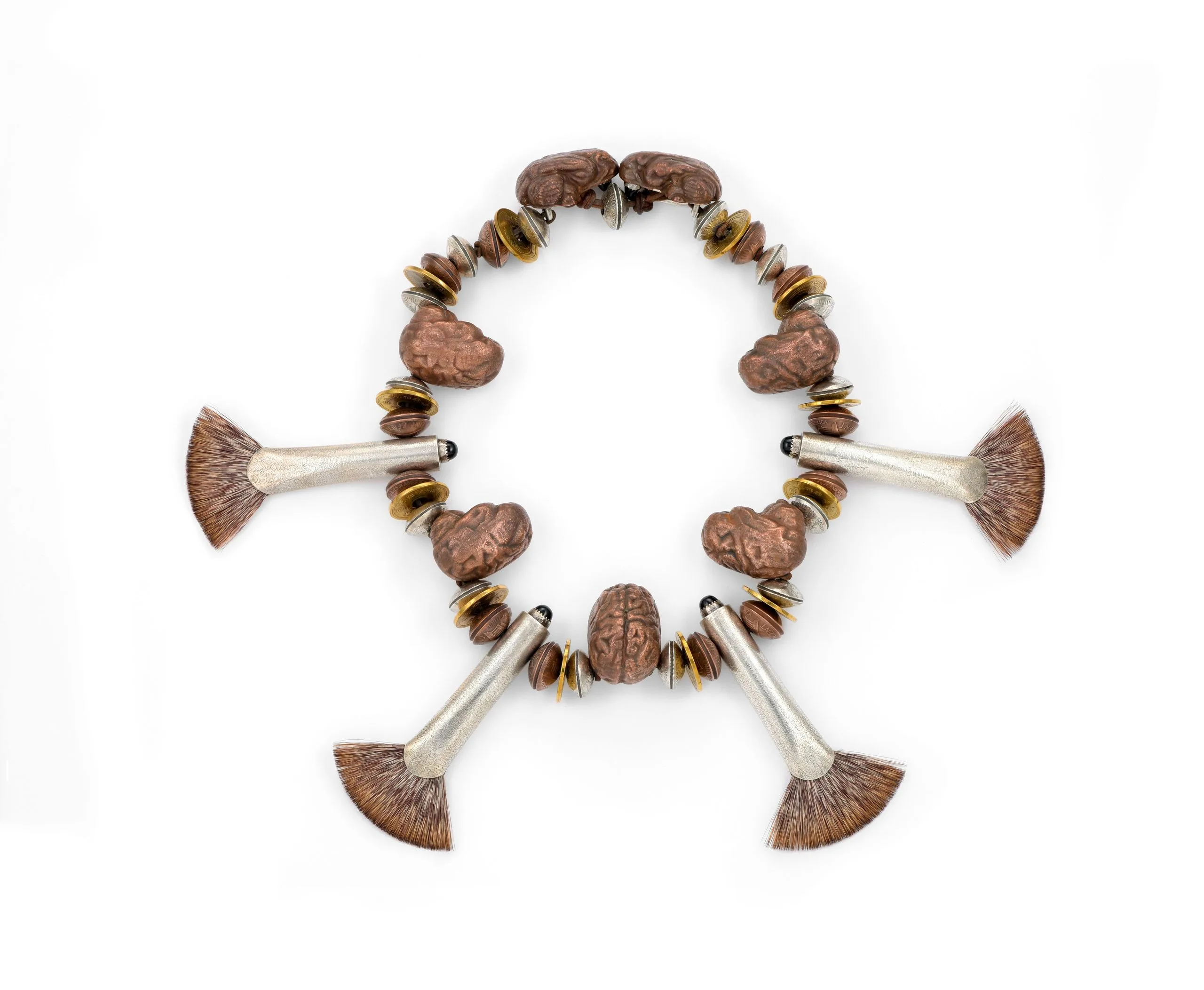- Silver, US and Japanese currency, copper, brass, onyx, polyester brushes