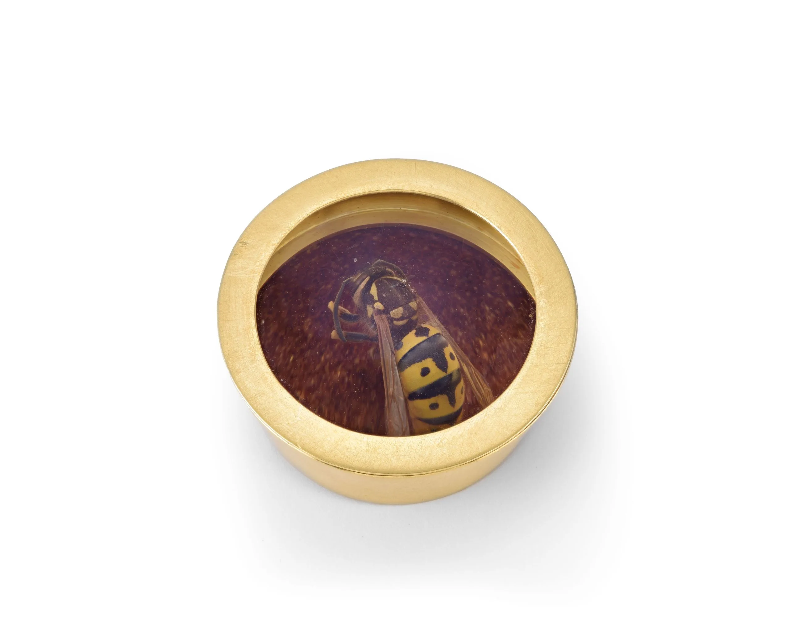 - Gold, queen yellow jacket, pollen, glass
