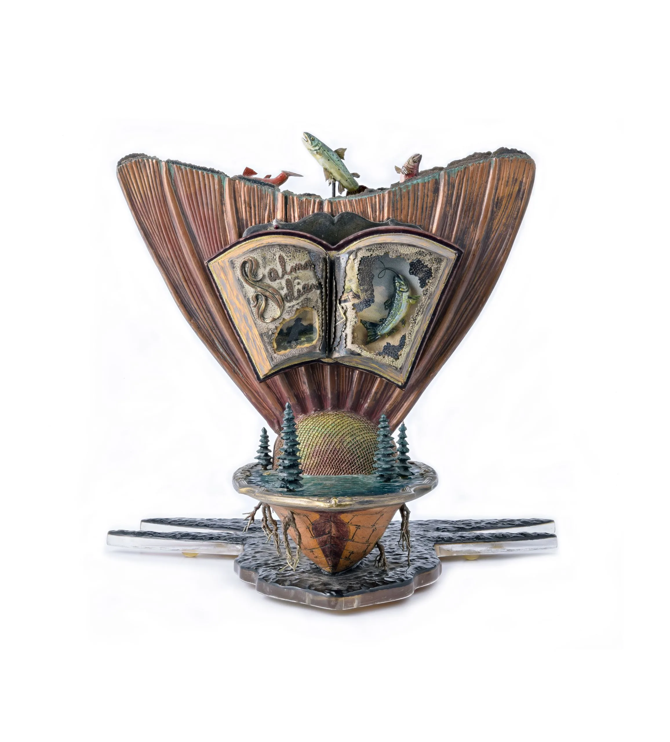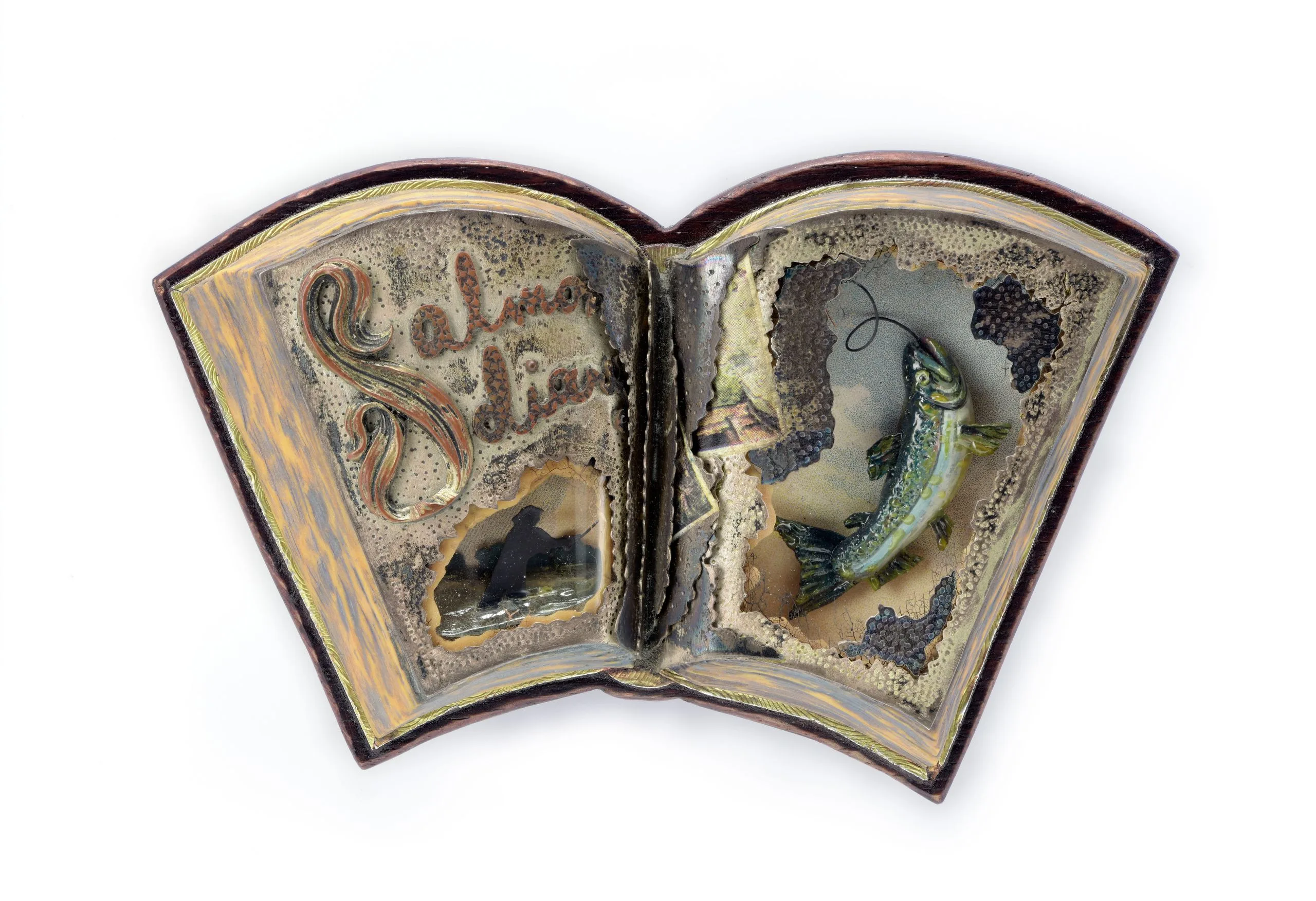 - Wood, polymethyl methacrylate, brass, silver, copper, polymer clay, printed paper, acetate, MicartaTM, found objects