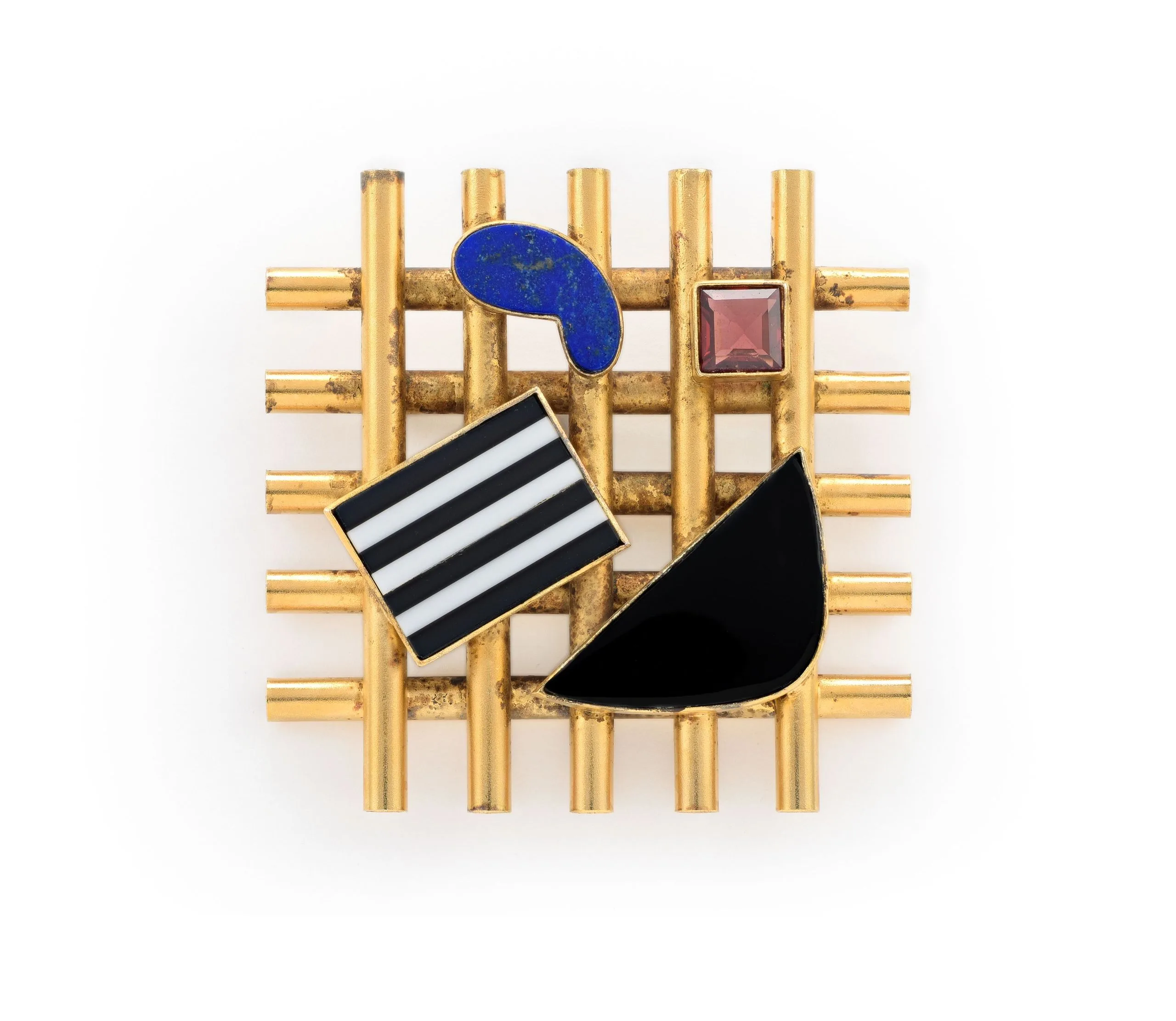 - Gilded silver, onyx, lapis lazuli, amethyst, agate