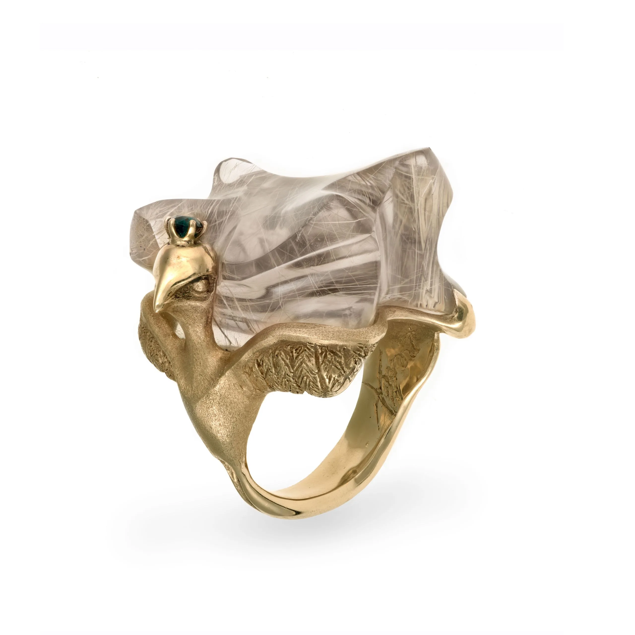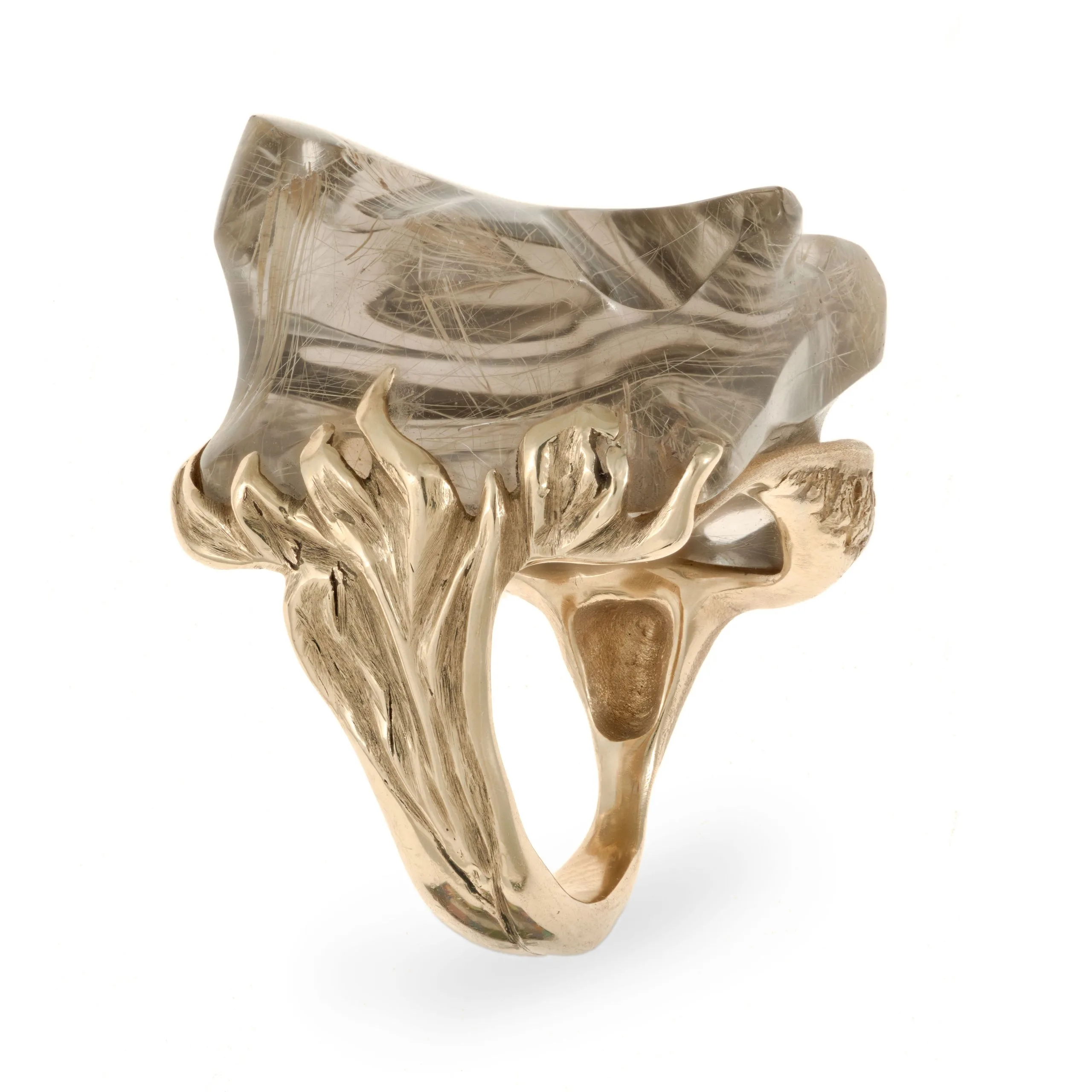 - Gold, rutilated quartz, tourmaline