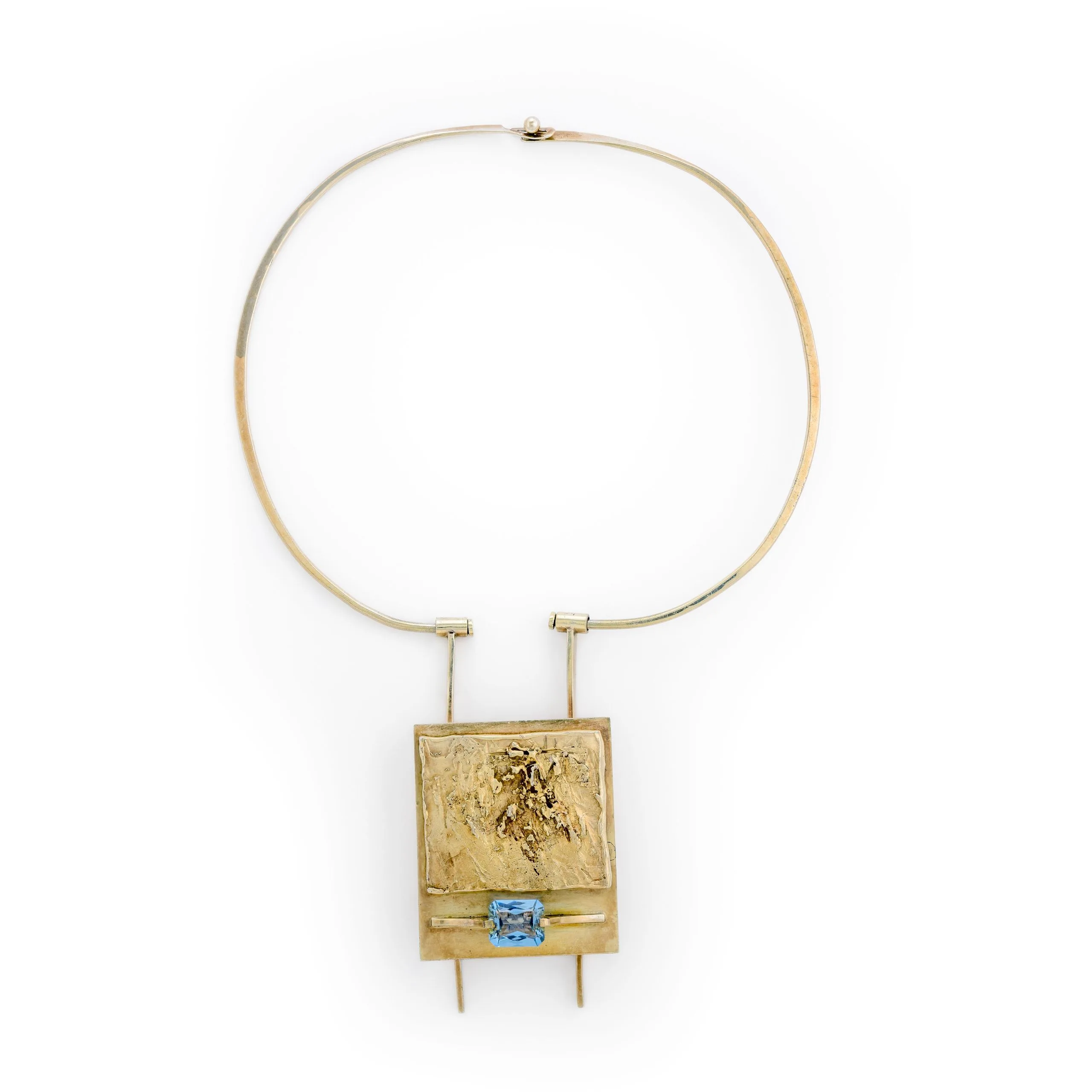 - Gilded silver, synthetic gemstone (possibly spinel)