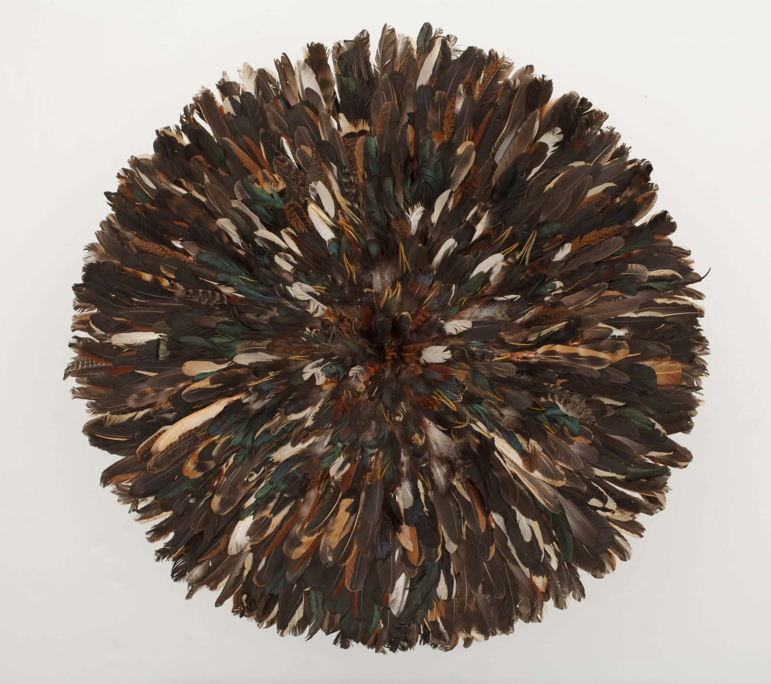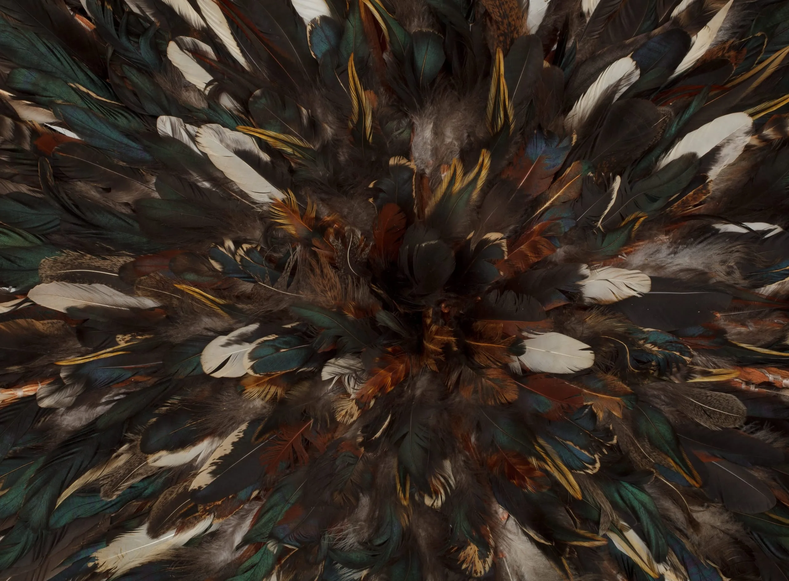 - Feathers with cotton/polyester plain weave palm fibers, and bast fibers