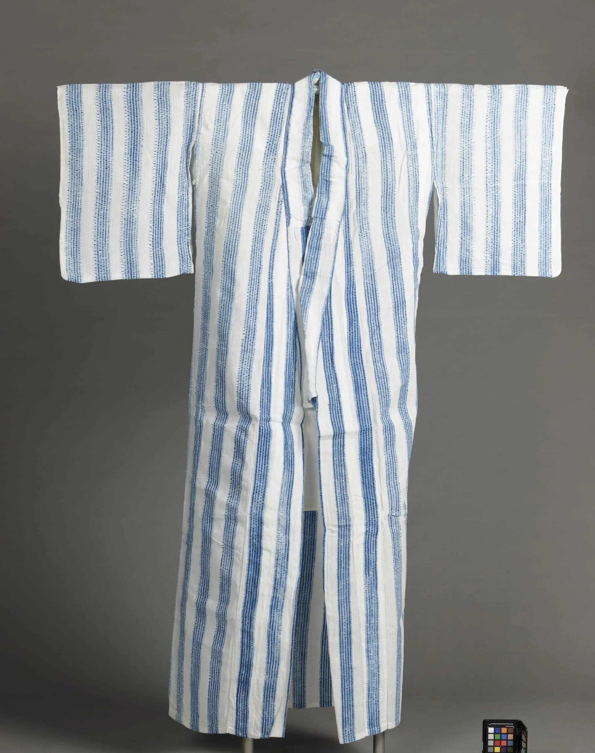 - Cotton plain weave, stitched and core-resist dyeing (shirokage shibori)